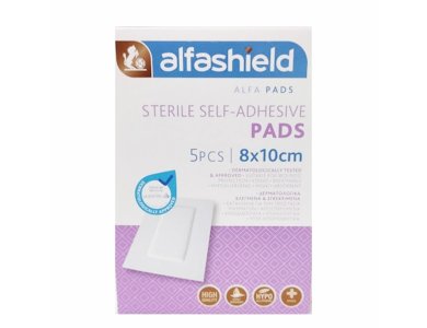 Alfashield Sterile Self-Adhesive Pads 8x10cm. Αποστειρωμένα Αυτοκόλλητα Επιθέματα, 5τμχ Αποστειρωμέν...