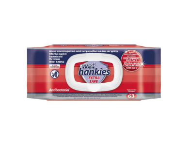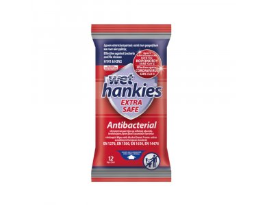 Wet Hankies Extra Safe Antibacterial Wet Wipes, Αντισηπτικά, Αντιβακτηριδιακά Μαντηλάκια, 12τμχ