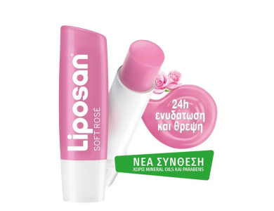 Liposan Soft Rose Caring Lip Balm Ενυδατικό Χειλιών για 24ωρη Ενυδάτωση, 4.8g