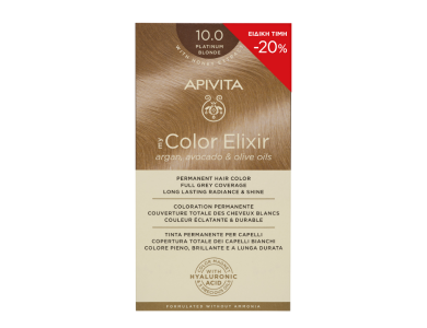 Apivita My Color Elixir Promo -20% Μόνιμη Βαφή Μαλλιών No 10.0 Κατάξανθο, 50+75ml, 1τμχ Η μόνιμη βαφ...