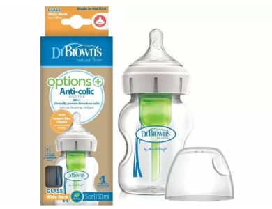 Dr. Brown's Options+ Anti-Colic WB91700. Γυάλινο Μπιμπερό Με Φαρδύ Λαιμό 0m+ Χωρητικότητας 270ml...