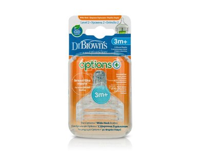 Dr. Brown's Options+ Silicone Teats (WN3201), Θηλές Σιλικόνης για Μπιμπερό με Φαρδύ Λαιμό 6m+, 2τμχ
