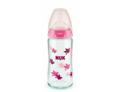Nuk First Choice Plus Temperature Control, Μπιμπερό Κατά των Κολικών με Θηλή Σιλικόνης 0-6m Pink Birds, 240ml