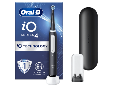 Oral-B iO Series 4, Ηλεκτρική Οδοντόβουρτσα με Χρονομετρητή, Αισθητήρα Πίεσης και Θήκη Ταξιδίου Μαύρη, 1τμχ