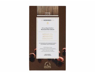 Korres Argan Oil Advanced Colorant 7.73. Βαφή Μαλλιών Χρυσή Μόκα, 50ml Μόνιμη βαφή μαλλιών με τεχνολ...