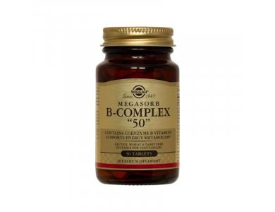 Solgar Megasorb Vitamin B-Complex "50" Σύμπλεγμα Βιταμινών Β για Τόνωση του Ανοσοποιητικού & Νευρικού Συστήματος - Ιδανικό για Ενίσχυση Συγκέντρωσης & Μείωση Κόπωσης, 50 tabs