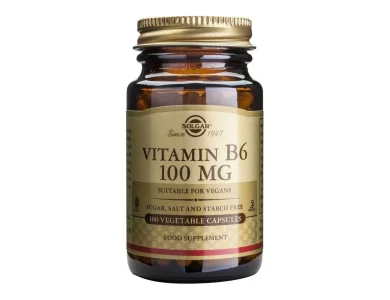 Solgar Vitamin B6 100mg Συμπλήρωμα Διατροφής για την Ομαλή Λειτουργία του Εγκεφάλου - Νευρικού Συστήματος, 100veg.caps