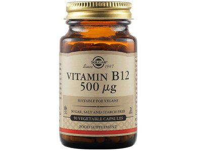 Solgar Vitamin B12 500 μg Συμπλήρωμα Διατροφής Βιταμίνη B12 για την Ομαλή Λειτουργία του Νευρικού Συστήματος, 50veg.caps