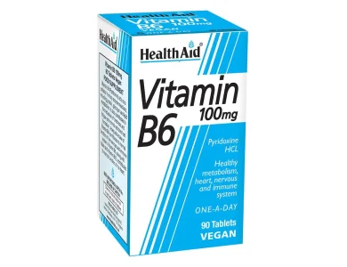 Health Aid Vitamin B6 (Pyridoxine Hcl) 100mg Συμπλήρωμα Διατροφής Κατάλληλο για το Μεταβολισμό των Υδατανθράκων Λιπών & Πρωτεϊνών, 90tabs