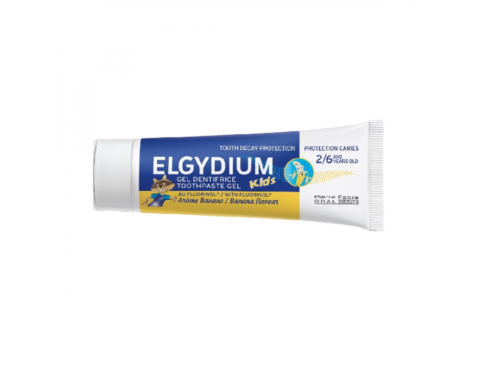 Elgydium Kids Banana Προστασία κατά της τερηδόνας για παιδιά 2 εως 6 ετών Η οδοντόπαστα ELGYDIUM Kids έχει εξειδικευμένη σύνθεση για τα πρώτα δόντια (νεογιλή οδοντοφυία). Περιέχει την κατάλληλη δοσολογία φθορίου που συνιστάται για την ηλικία από 2 έως 6 ετών για να προσφέρει μέγιστη ασφάλεια και αποτελεσματική προστασία από την τερηδόνα. Ενδυναμώνει και επαναμεταλλικοποιεί το σμάλτο των δοντιών από την πρώτη χρήση Ενδυναμώνει και επαναμεταλλικοποιεί το σμάλτο των δοντιών από το 1ο λεπτό Αυξάνει την αντίσταση των δοντιών στις επιθέσεις των οξέων που προέρχονται από τα βακτήρια Προστασία μεγαλύτερης διάρκειας κατά της τερηδόνας χάρη στη δημιουργία ενός προστατευτικού φιλμ (σιλιγλυκόλη) Με γεύση κόκκινων φρούτων που λατρεύουν τα παιδιά Η αποτελεσματικότητα της ELGYDIUM Kids Κόκκινα Φρούτα οφείλεται στην ειδική της σύνθεση: Fluorinol? - μία πατέντα της Pierre Fabre Το Fluorinol έχει την ιδιότητα να προσκολλάται στα δόντια πιο γρήγορα και πιο έντονα σε σχέση με το συνηθισμένο φθόριο 5 φορές μεγαλύτερη δέσμευση φθορίου μετά από το 1ο λεπτό και 12 φορές μεγαλύτερη μετά από το 3ο λεπτό σε σχέση με το ανόργανο φθόριο Αυξάνει την αντίσταση των δοντιών στις επιθέσεις των οξέων που προκαλούν τερηδόναι Σιλιγλυκόλη - ένα προστατευτικό φιλμ για τα δόντια Μεγαλύτερη διάρκεια παραμονής του φθορίου πάνω στην επιφάνεια του δοντιού ακόμα και μετά το ξέπλυμα (+30%) Αναστέλλει τον αποικισμό των βακτηρίων Τρόπος Χρήσης: Η οδοντόπαστα ELGYDIUM Kids Banana είναι ένα προϊόν κατάλληλο για την καθημερινή σας στοματική υγιεινή. Βουρτσίστε τα δόντια σας για τουλάχιστον 3 λεπτά, μετά από κάθε γεύμα.