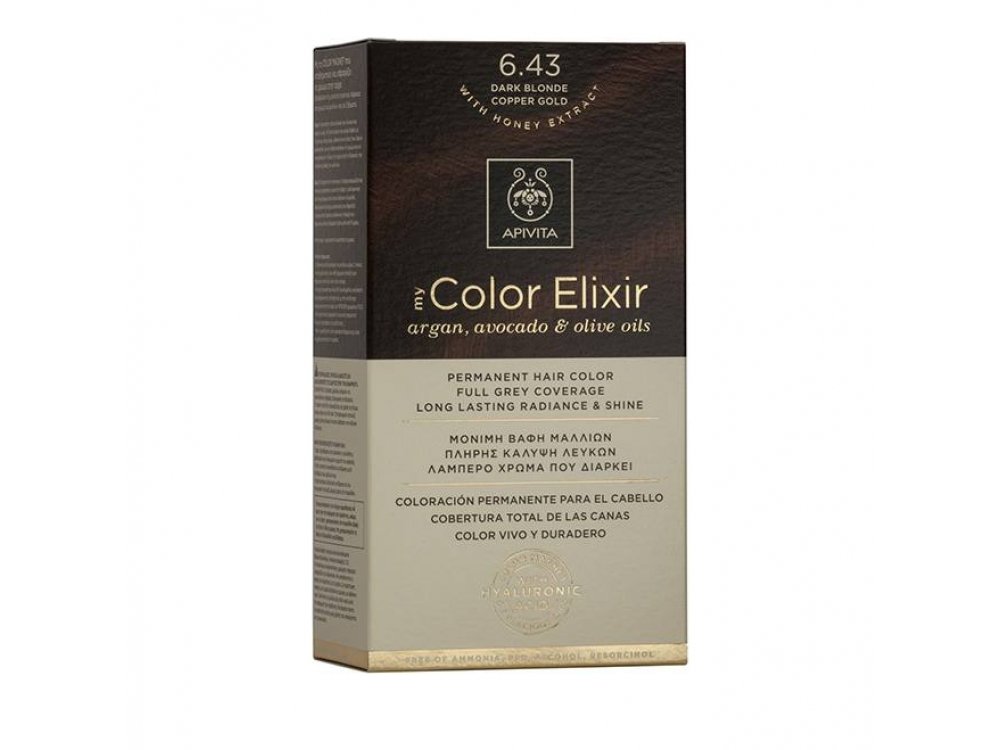 Η μόνιμη βαφή μαλλιών My Color Elixir της APIVITA είναι ειδικά σχεδιασμένη με γνώμονα τη φυσικότητα, το επαγγελματικό αποτέλεσμα και με απόλυτο σεβασμό στο τριχωτό. Ένα καινοτόμο σύστημα που σταθεροποιεί και σφραγίζει το χρώμα στην τρίχα. ΑΠΟΤΕΛΕΣΜΑ, Η ΤΡΙΧΑ ΚΡΑΤΑ ΣΑ ΜΑΓΝΗΤΗΣ ΤΟ ΧΡΩΜΑ Πώς λειτουργεί: Εξασφαλίστε τη μέγιστη ένταση και διάρκεια στο χρώμα των μαλλιών σας σε 2 βήματα: Βήμα 1ο: Αποκτήστε τέλεια κάλυψη των λευκών και λάμψη σε μόλις 30 λεπτά χάρη στην κρέμα βαφής με 3 πολύτιμα έλαια (argan, αβοκάντο, και ελιάς ) που δρουν συνδυαστικά για να σταθεροποιήσουν το χρώμα και να επανορθώσουν τη δομή της τρίχας κατά τη διάρκεια της διαδικασίας βαφής των μαλλιών. Βήμα 2ο: Ενισχύστε την ένταση και τη λάμψη εφαρμόζοντας την κρέμα περιποίησης για μετά τη βαφή με υαλουρονικό οξύ και εκχύλισμα μελιού που ενυδατώνει τα μαλλιά, δημιουργώντας ένα φιλμ προστασίας που σφραγίζει το χρώμα στην τρίχα και αναδεικνύει τη λάμψη των βαμμένων μαλλιών. Εφαρμόστε ξανά μετά από 15 μέρες. Η βαφή My Color Elixir δεν περιέχει τις κυριότερες "ανεπιθύμητες" ουσίες: PPD (para-phenylenediamine): βασική χρωμοφόρα ομάδα σε προϊόντα βαφής που αποτελεί και την κυριότερη αλλεργιογόνο ουσία σε βαφές μαλλιών. Αμμωνία: αλκαλικό μέσο που χρησιμοποιείται για να ανοίξουν τα λέπια του περιτριχίου και να εισχωρήσει η βαφή και έχει δυσάρεστη και βαριά μυρωδιά. Οινόπνευμα: μπορεί να ερεθίσει το τριχωτό της κεφαλής και να αφυδατώσει την τρίχα Resorcinol, Parabens, Propylene Glycol, SLS, Mineral oil, Silicones, 26 ταυτοποιημένα αλλεργιογόνα των αρωμάτων: ουσίες που συχνά ενοχοποιούνται για αλλεργίες, ερεθισμούς και άλλες ανεπιθύμητες δράσεις. Η Συσκευασία περιλάμβάνει Κρέμα βαφή σε σωληνάριο, 50ml Γαλάκτωμα ενεργοποίησης χρώματος σε φιαλίδιο με απλικατέρ Vol 20, 75ml Κρέμα μαλλιών για μετά τη βαφή σε 2 φακελάκια, 15ml Ένα ζευγάρι γάντια Οδηγίες χρήσης