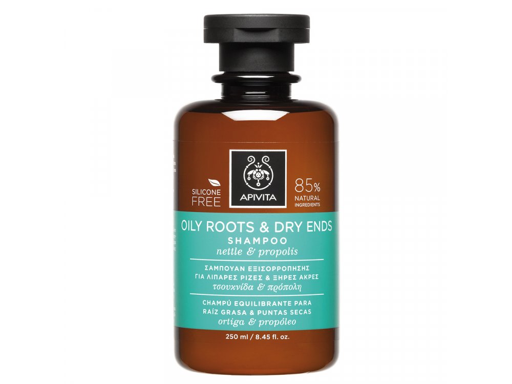 Σαμπουάν Εξισορρόπησης Για Λιπαρές Ρίζες και Ξηρές Ακρες Τσουκνίδα και Πρόπολη 85% φυσικά συστατικά ΑΠΑΛΟΣ ΚΑΘΑΡΙΣΜΟΣ - ΕΞΙΣΣΟΡΟΠΗΣΗ ΛΙΠΑΡΟΤΗΤΑΣ ΕΝΥΔΑΤΩΣΗ & ΕΠΑΝΟΡΘΩΣΗ ΤΩΝ ΑΚΡΩΝ - ΑΠΑΛΑ & ΑΝΑΛΑΦΡΑ ΜΑΛΛΙΑ Καθαρίζει απαλά και εξισορροπεί τη λιπαρότητα στις ρίζες με ελληνική βιολογική τσουκνίδα, πρόπολη και βιολογικά αιθέρια έλαια φασκόμηλου και γκρέιπφρουτ Ενυδατώνει και επανορθώνει τις ξηρές ταλαιπωρημένες άκρες με μέλι, υδρολυμένες πρωτε?νες σιταριού, πανθενόλη και APISHIELD HS Χαρίζει απαλά, ανάλαφρα μαλλιά με όγκο ΔΕΡΜΑΤΟΛΟΓΙΚΑ ΕΛΕΓΜΕΝΟ Βάση από Φυτικά Εγχύματα Η ΑPIVITA αντικαθιστά το νερό με βιολογικά εγχύματα όπως το οργανικό δενδρολιβανο, που προσδίδουν στα προϊόντα της κυρίως αντιοξειδωτικές ιδιότητες. Με δεδομένο ότι το νερό στα περισσότερα καλλυντικά προϊόντα αντιστοιχεί σε πάνω από το 70% της σύνθεσης τους, τα προϊόντα της APIVITA είναι από τη βάση τους πλούσια σε αντιοξειδωτικά συστατικά.Τo έγχυμα από δενδρολίβανο θεωρείται η πιο αποτελεσματική λύση κατά της γήρανσης των μαλλιών, ενώ παράλληλα, προσφέρει μοναδική αναζωογόνηση και τόνωση. Η αποτελεσματικότητα των εγχυμάτων που επιλέγονται κάθε φορά αποδεικνύεται με επιστημονικές μεθόδους. Το αποκλειστικό, φυτικό, συνεργιστικό συμπλοκον APISHIELD HS προστατεύει τη βιοχλωρίδα του τριχωτού της κεφαλής, ενισχύει την άμυνα των μαλλιών από τις επιθέσεις του περιβάλλοντος (ρύπανση, styling) ενώ αναδομεί και ενδυναμώνει την τρίχα. Η αυθεντικότητά του βασίζεται στο συνδυασμό 7 σπάνιων ολιγοσακχαριτών.