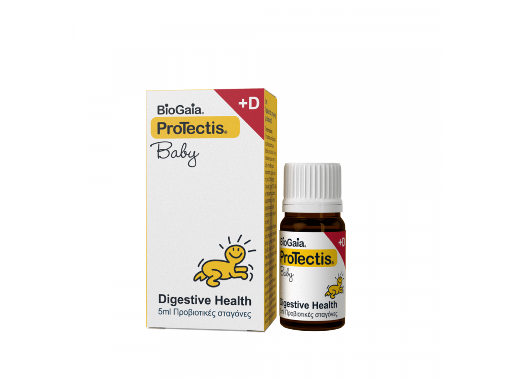 Περιγραφή Το πρώτο προβιοτικό σε σταγόνες παγκοσμίως (2004). Κλινικά μελετημένο και αποδεδειγμένο ως διαιτητική αγωγή για την αντιμετώπιση των κολικών του 1ου τριμήνου στα βρέφη. Κύρια Χαρακτηριστικά Απόλυτα ασφαλές για βρέφη, νήπια και παιδιά Κλινικά αποδεδειγμένο ότι μειώνει τους κολικούς στα βρέφη Κλινικά τεκμηριωμένο ότι προλαμβάνει τις γαστρεντερικές διαταραχές από αντιβίωση Κλινικά τεκμηριωμένο ότι προλαμβάνει τις λειτουργικές γαστρεντερικές διαταραχές Εύκολο στη χορήγησή του σε βρέφη και παιδιά Δεν επηρεάζει τον θηλασμό ή τη γεύση των τροφών Οδηγίες Χρήσης Δοσολογία: 5 σταγόνες εφάπαξ ημερησίως (περιέχουν 108 CFUs L.reuteri ProTectis_ και 400IU βιταμίνης D). Κάθε φιαλίδιο επαρκεί για ένα μήνα. Κατάλληλο για την πρόληψη των γαστρεντερικών διαταραχών από αντιβίωση (διάρροια, κοιλακό άλγος, μετεωρισμό) σε βρέφη και νήπια. Δοσολογία: 5 σταγόνες εφάπαξ (περιέχουν 108 CFUs L.reuteri ProTectis_) 1 ώρα μετά τη χορήγηση της αντιβίωσης. Κάθε φιαλίδιο επαρκεί ανάλογα με τη χορήγηση αντιβίωσης ανά 24ωρο. Δοσολογία: 10 σταγόνες εφάπαξ (περιέχουν 2x108 CFUs L.reuteri ProTectis_) 1 ώρα μετά από κάθε χορήγηση αντιβίωσης. Κάθε φιαλίδιο επαρκεί ανάλογα με τη χορήγηση αντιβίωσης ανά 24ωρο. Συστήνεται επίσης για την πρόληψη των λειτουργικών γαστρεντερικών διαταραχών (κολικοί, δυσκοιλιότητα, αναγωγές) στα βρέφη κατά τους πρώτους 6 μήνες της ζωής. Δοσολογία: 5 σταγόνες εφάπαξ ημερησίως (περιέχουν 108 CFUs L.reuteri ProTectis_) για το χρονικό διάστημα των τριών πρώτων μηνών. Κάθε φιαλίδιο επαρκεί για ένα μήνα.