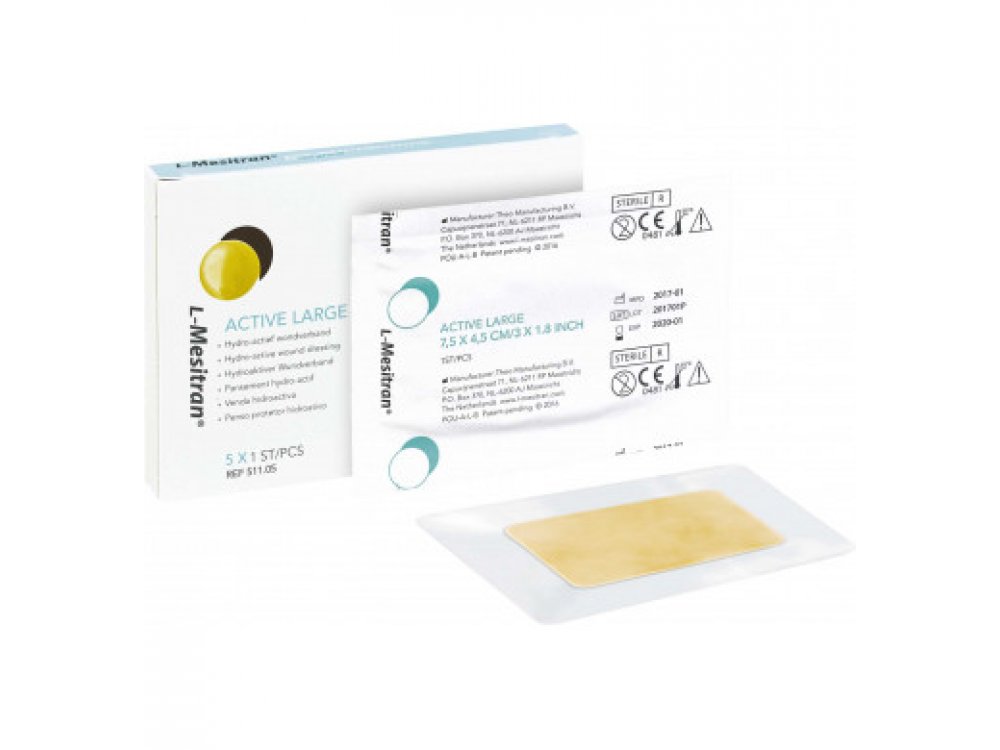 Υδροενεργό επίθεμα πληγής προστασίας BIOSKIN L-Mesitran Active Large 7.5x4.5cm 5pcs για Επιφανειακά τραύματα με ή χωρίς εξίδρωμα Εγκαύματα 1ου & 2ου βαθμού Προστασία ραμμάτων Ουλές από αφαίρεση σπίλων Αδιάβροχο.