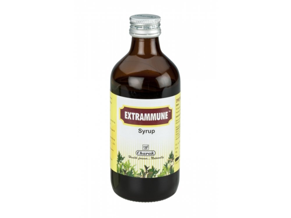 Tο EXTRAMMUNE δημιουργήθηκε από φυτικά εκχυλίσματα και απευθύνεται στις περιπτώσεις που κρίνεται αναγκαία η ενίσχυση της άμυνας κατά τη διάρκεια ή και πριν από κάποια λοίμωξη Ενίσχυση της άμυνας κατά τη διάρκεια μιας λοίμωξης ή προληπτικά. Το harak extrammune syrup περιέχει Terminalia chebula,Terminalia belerica, Emblica officinalis, Commiphora mukul: Συνδυασμός φυτοδραστικών με αντιφλεγμονώδεις ,αντιμολυσματικές, ανοσοδιεγερτικές, και δερμοπροστατευτικές ιδιότητες, χρήσιμων σε λοιμώξεις του ανώτερου αναπνευστικού όπως φαρυγγίτιδες, αμυγδαλίτιδες, ωτίτιδες, ιγμορίτιδες, στοματίτιδες, αλλά και σε περιπτώσεις πυώδους ακμής, δερματίτιδων, δύσκολων στην επούλωση ελκών.Zinziber officinalis, piper nigrum,piper longum. Μειώνουν τη ένταση ,τη σοβαρότητα και τη διάρκεια των λοιμώξεων του ανώτερου αναπνευστικού και αυξάνουν τη βιοδιαθεσιμότητα άλλων δραστικών( πχ. η πιπερίνη αυξάνει τη βιοδιαθεσιμότητα της κουρκουμίνης κατά 2000% ).Tinospora cordifolia: Ισχυρός ανοσορυθμιστής, με αντιφλεγμονώδη και αντιοξειδωτική δράση.Curcuma longa, Rubia cordifolia: Με αντιβακτηριακή, αντιφλεγμονώδη δράση.