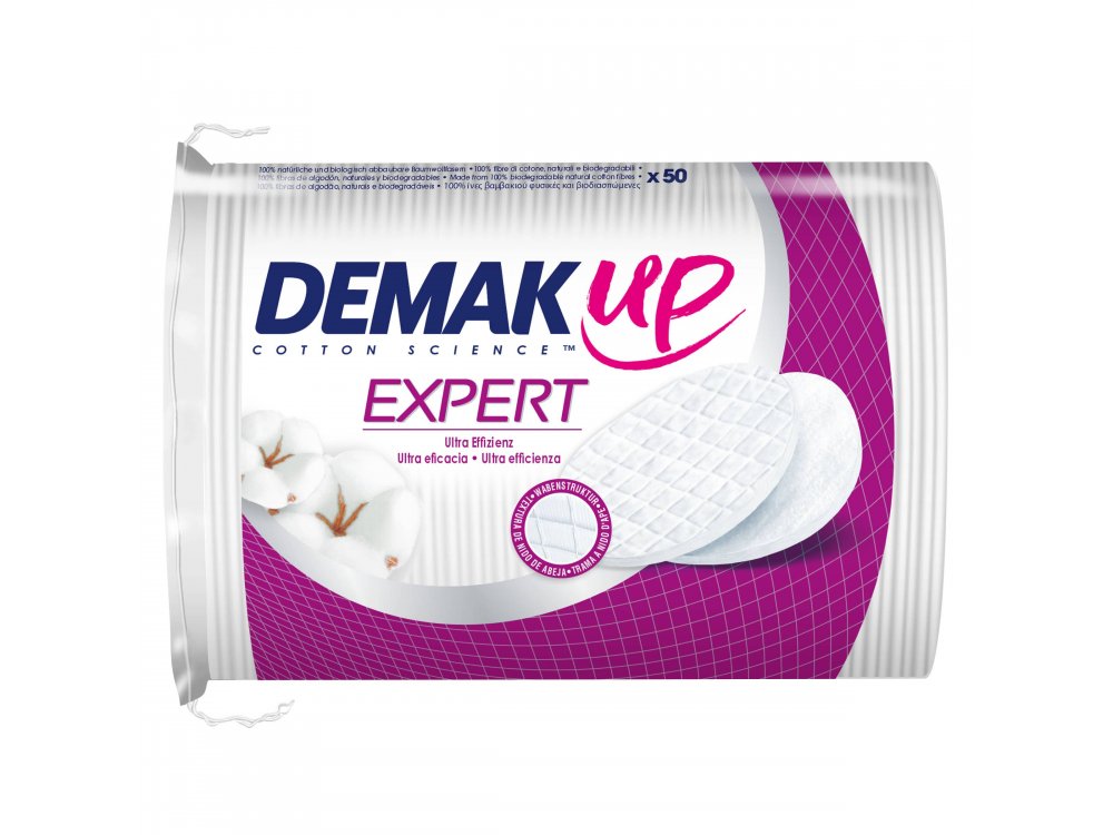 DEMAK'UP Expert Oval Disks DEMAK'UP. Ο ειδικός στο ντεμακιγιάζ που εξασφαλίζει τέλειο αποτέλεσμα με μια κίνηση, για καθαρή επιδερμίδα και αίσθηση φρεσκάδας. Η ολοκληρωμένη πρόταση DEMAK'UP Expert διαθέτει τη νέα τρισδιάστατη πατέντα της κυψελωτής υφής για τέλειο αποτέλεσμα με μια κίνηση. DEMAK'UP Expert Oval Disks. Η μία πλευρά είναι ιδανική για το βαθύ καθαρισμό της επιδερμίδας. Η άλλη πλευρά είναι ιδανική για την εφαρμογή των προϊόντων φροντίδας της επιδερμίδας. Είναι κατασκευασμένο από 100% βαμβάκι. Δεν αφήνουν χνούδι Υποαλλεργικό προϊόν