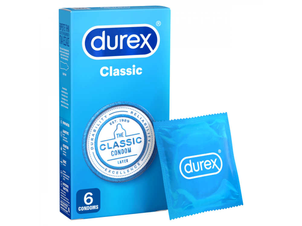 Τα προφυλακτικά Durex Classic προσφέρουν την ίδια ανθεκτικότητα, αξιοπιστία και υπεροχή από τότε που ξεκινήσαμε το 1929. Παραμένοντας απλά, τα κλασικά προφυλακτικά της Durex σας προσφέρουν την προστασία που περιμένετε από την Durex, σε κατάλληλο σχήμα και προ-λιπασμένα με λιπαντικό σιλικόνης για πιο απαλή αίσθηση και πιο ευχάριστη εμπειρία. 100% ηλεκτρονικά ελεγμένα με 5 επιπλέον ελέγχους ποιότητας που διεξάγονται σε κάθε παρτίδα. Επίσης είναι δερματολογικά ελεγμένα. Μεγάλη διάμετρος Large (oνομαστικό πλάτος: 56mm).