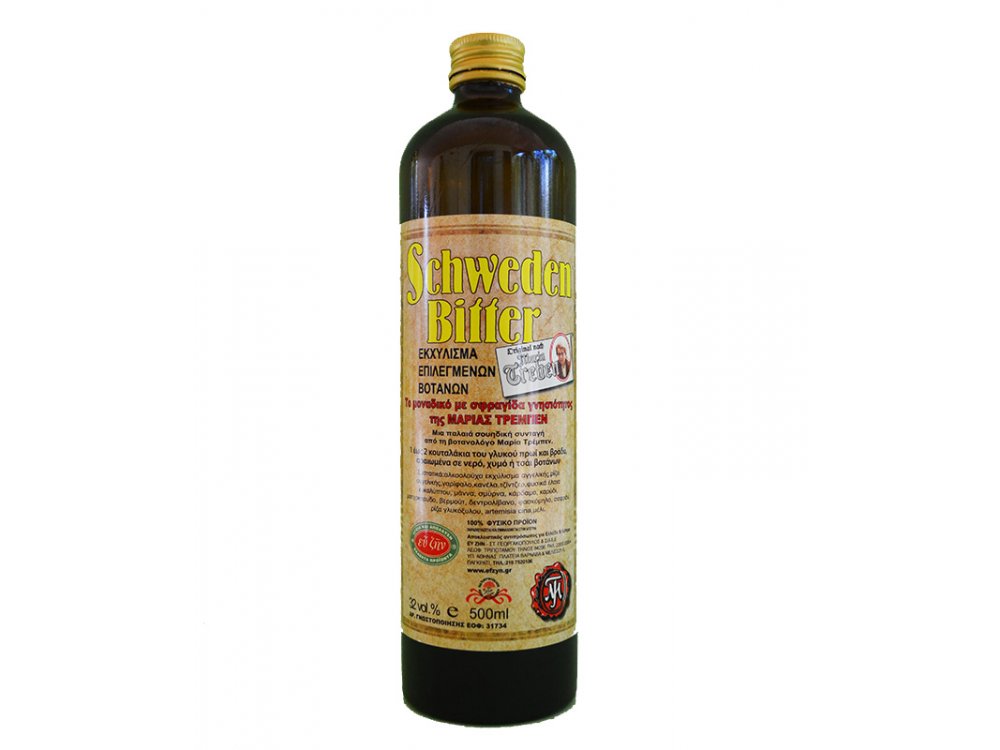 To ελιξίριο Schweden Bitter (Σβέντεν Μπίτερ) είναι το κορυφαίο δημιούργημα της Μαρίας Τρέμπεν και η κορωνίδα των προϊόντων του ομώνυμου οίκου. Πρόκειται για ένα αλκοολούχο εκχύλισμα 16 βοτάνων -100% φυσικό προϊόν- οι θεραπευτικές ιδιότητες των οποίων αλληλοενισχύονται με τον μεταξύ τους συνδυασμό. Έχει καταξιωθεί παγκοσμίως ως ο κυριότερος σύμμαχος κάθε θεραπείας, συμβάλλει αποτελεσματικά στη διατήρηση της ψυχικής και σωματικής υγείας και ευεξίας ενώ δεν έχει παρενέργειες, ούτε αντενδείξεις.