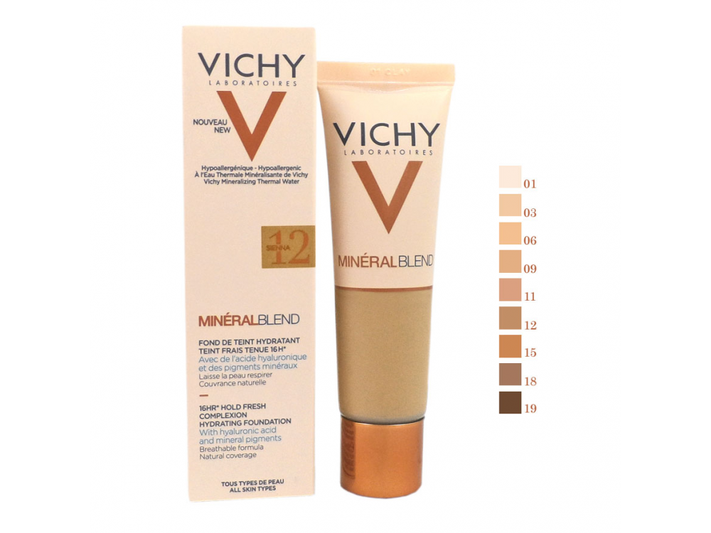 Ενυδατικό Fond de Teint 16 ωρών. Η εξαιρετικά ελαφριά του σύνθεση εμπλουτίζεται με ενεργά συστατικά dermocosmetic: Ιαματικό Νερό Vichy, υαλουρονικό οξύ φυσικής προέλευσης και φυσικές χρωστικές ουσίες.