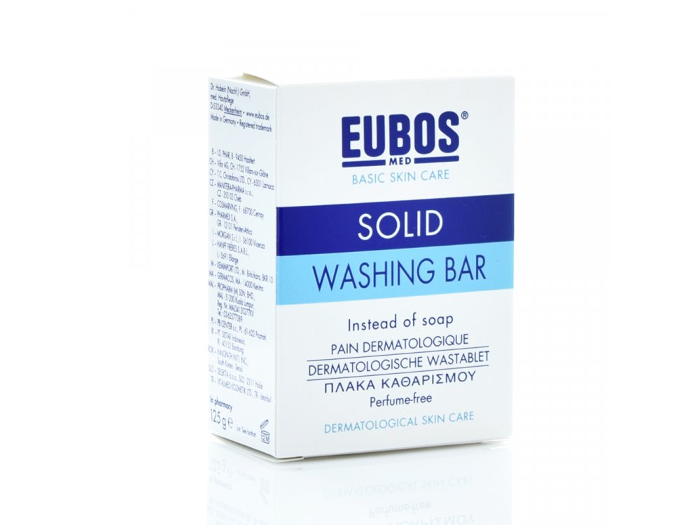 Στερεή πλάκα πλυσίματος, αντί για σαπούνι, για τον απαλό και βαθύ καθαρισμό προσώπου και σώματος. Με τον συνδυασμό απαλών ουσιών καθαρισμού συμβάλλει στον αποτελεσματικό καθαρισμό της επιδερμίδας, ενώ ταυτόχρονα ενισχύει την φυσική προστατευτική λειτουργία του δέρματος ενάντια σε επιβλαβείς μικροοργανισμούς. Κατάλληλη για τον καθαρισμό κάθε τύπου δέρματος, ιδιαίτερα και για τα λιπαρά δέρματα και τα δέρματα με προβλήματα ακμής. ΧΩΡΙΣ ΑΡΩΜΑ ΑΝΤΙ ΣΑΠΟΥΝΙΟΥ Καθαρίζει απαλά και βαθιά τους πόρους του δέρματος. Πλάκα καθαρισμού για ολόκληρο το σώμα. Το καλά εξισορροπημένο μίγμα των καθαριστικών συστατικών της επιτρέπει τον καθαρισμό ακόμη και με σκληρό και κρύο νερό, χωρίς να προκαλεί αλκαλική διόγκωση στο δέρμα. Με αυτό τον τρόπο, διατηρεί τη φυσική βιόσφαιρα, τον προστατευτικό μανδύα του δέρματος, εμποδίζοντας τη δημιουργία αποικιών από επιβλαβή βακτήρια και μύκητες. Η ΠΛΑΚΑ ΚΑΘΑΡΙΣΜΟΥ EUBOS είναι ιδιαίτερα κατάλληλη για το βαθύ και προσεκτικό καθαρισμό ακόμη και του προβληματικού και μη καθαρού δέρματος, καθώς και στις περιπτώσεις που για θεραπευτικούς λόγους απαιτείται εντατικός καθαρισμός χωρίς τη χρήση σαπουνιού. Συστήνεται σε όλες τις περιπτώσεις που δεν είναι ανεκτό το σαπούνι. Θα πρέπει να αποφεύγεται άμεση επαφή με τα μάτια. Aπαλλαγμένο από: Αλκαλικούς σάπωνες Συντηρητικά ΣΥΣΤΑΤΙΚΑ Το επιλεγμένο μίγμα λιπαντικών ουσιών εμποδίζει την ξηρότητα και την απολέπιση. Η Αλλαντοϊνη ενισχύει την αναγέννηση των κυτάρρων, απαλύνει το δέρμα και αυξάνει την ελαστικότητα του.