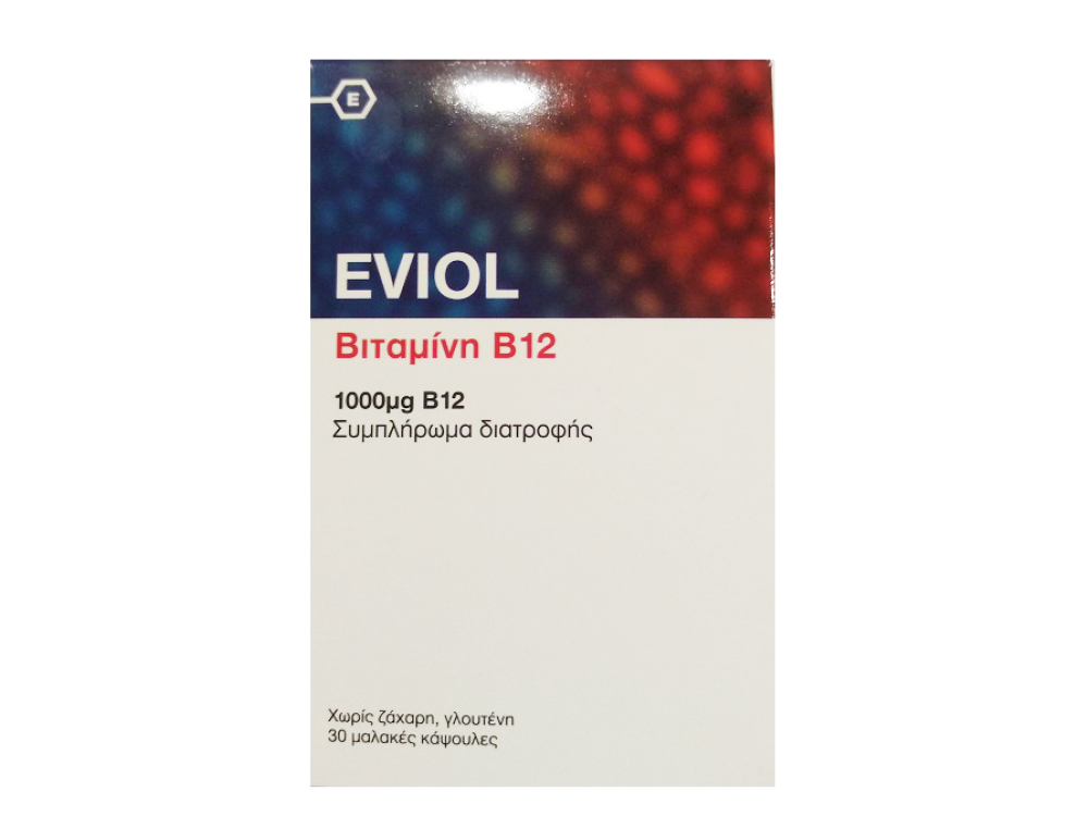 Το συμπλήρωμα διατροφής Eviol Vitamin B12 παρέχει στον οργανισμό 1000μg βιταμίνης Β12 (κυανοκοβαλαμίνης), μία από τις οκτώ βιταμίνες του συμπλέγματος Β, μια υδατοδιαλυτή βιταμίνη που εμπλέκεται στον μεταβολισμό κάθε κυττάρου του ανθρώπινου σώματος, συμπαράγοντας στη σύνθεση του DNA και στον μεταβολισμό λιπαρών οξέων και αμινοξέων και ιδιαίτερα σημαντική για τη φυσιολογική λειτουργία του νευρικού συστήματος μέσω του ρόλου του στη σύνθεση της μυελίνης, όπως επίσης και στην ωρίμανση των ερυθρών αιμοσφαιρίων στον μυελό των οστών.