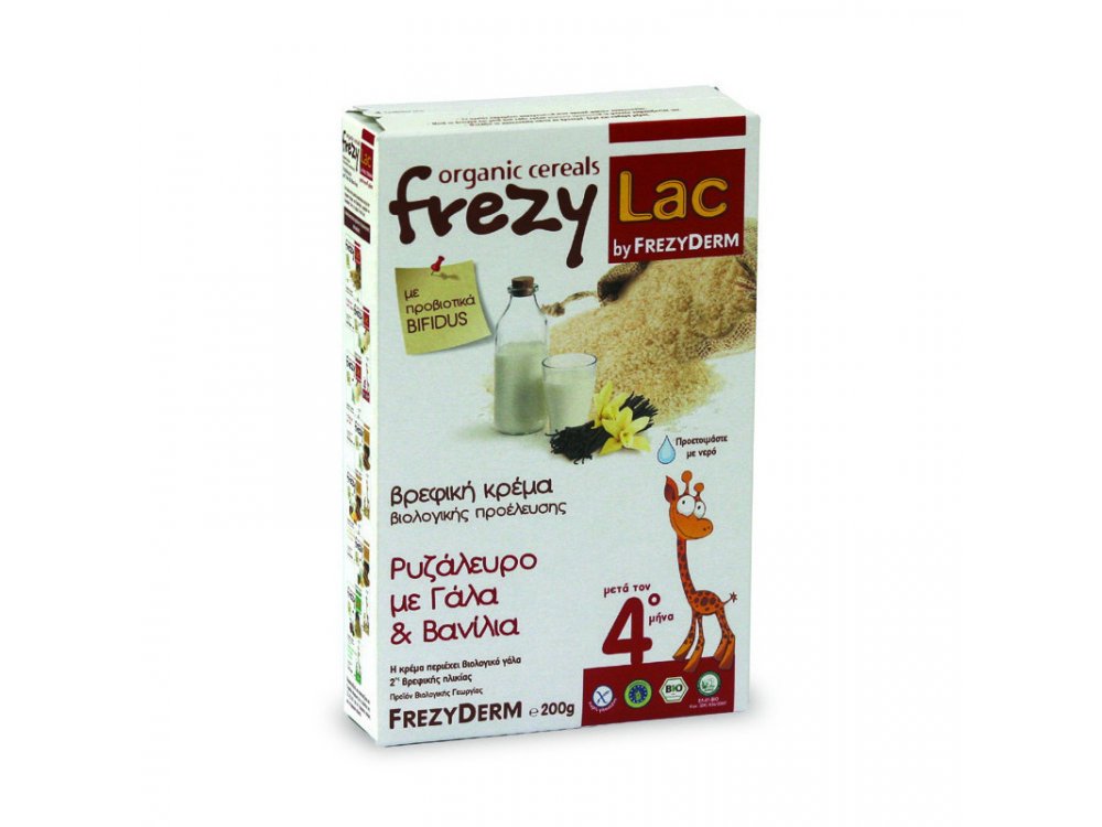 Βιολογική Κρέμα Ρυζάλευρο με Γάλα και Βανίλια για βρέφη μετά τον 4ο μήνα. Περιέχει γάλα 2ης βρεφικής ηλικίας.