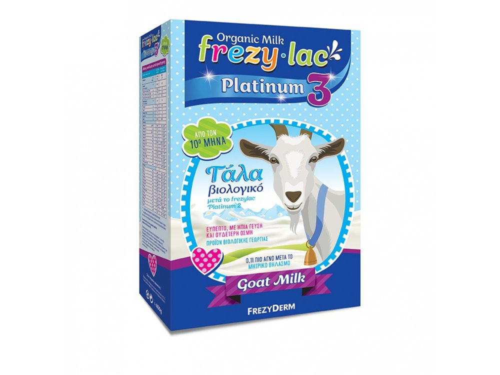 Εύπεπτο με ήπια γεύση και ουδέτερη οσμή Το FREZYLAC PLATINUM 3 είναι αγνό βιολογικό κατσικίσιο γάλα σε σκόνη, κατάλληλο για βρέφη από τον 10ο μήνα ως μετάβαση από τον θηλασμό ή από το FREZYLAC PLATINUM 2. Μπορεί επίσης να αντικαταστήσει οποιοδήποτε γάλα στη συνέχεια της νηπιακής και παιδικής ηλικίας. Παράγεται από την εναλλακτική, υγιεινή και φιλική προς το περιβάλλον βιολογική αιγοκτηνοτροφία και εξασφαλίζει στο βρέφος μία φυσική, ισορροπημένη διατροφή. Είναι εμπλουτισμένο με πρωτε_νες, βιταμίνες, μέταλλα και ιχνοστοιχεία, κορεσμένα και πολυακόρεστα λιπαρά οξέα (σε ιδανική αναλογία) και προσφέρει επιπλέον οφέλη στην πέψη, τη διατήρηση της εντερικής χλωρίδας και τον μεταβολισμό των θρεπτικών συστατικών, χάρη στη διαφορετική πρωτεϊνική δομή του κατσικίσιου γάλατος. - Προϊόν Βιολογικής αιγοκτηνοτροφίας - Χαμηλά ποσοστά σε υδατάνθρακες, κορεσμένα λιπαρά, νάτριο και κάλιο - Ιδανικά ποσοστά σε ενέργεια, πρωτε_νες, βιταμίνες και μέταλλα - Χωρίς GMO (γενετικά τροποποιημένους παράγοντες) - Χωρίς γλουτένη Κατάλληλο για: - Βρέφη από τον 10? μήνα