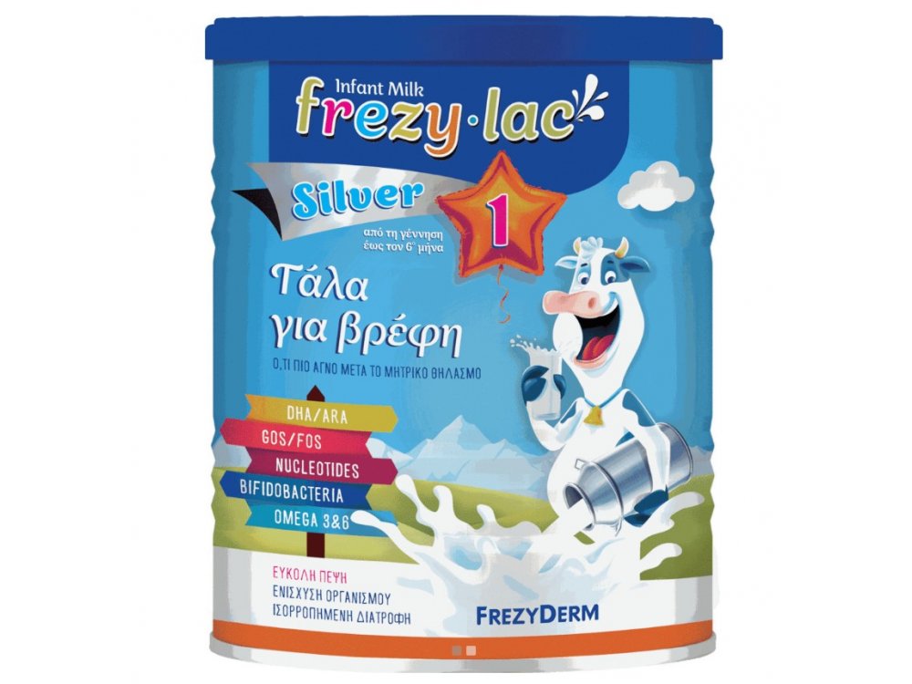 Silver 1 Αγελαδινό Γάλα για Βρέφη από την Γέννηση έως τον 6 μήνα - 400g Το Frezylac Silver 1 Αγελαδινό Γάλα για Βρέφη από την Γέννηση έως τον 6 μήνα είναι αγνό αγελαδινό γάλα σε σκόνη. Αποτελεί την ιδανική τροφή μετά τον θηλασμό για βρέφη από τη γέννηση έως τον 6ο μήνα. Το Frezylac Silver 1 Αγελαδινό Γάλα για Βρέφη από την Γέννηση έως τον 6 μήνα παράγεται από υψηλής ποιότητας πρώτες ύλες και περιέχει όλα τα απαραίτητα συστατικά για τη σωστή ανάπτυξη του βρέφους τους πρώτους μήνες της ζωής του: βιταμίνες, μέταλλα, πρεβιοτικά, νουκλεοτίδια, DHA/ARA, προβιοτικά. Δράσεις Συμβάλει στην εύκολη πέψη.Ενισχύει τον οργανισμό.Προσφέρει μία φυσική, ισορροπημένη διατροφή. Το Frezylac Silver 1 Αγελαδινό Γάλα για Βρέφη από την Γέννηση έως τον 6 μήνα δεν περιέχει GMO (γενετικά τροποποιημένους παράγοντες), διορθωτικά γεύσης, συντηρητικά, χρωστικές, τεχνητά πρόσθετα και γλουτένη. ΣΗΜΑΝΤΙΚΗ ΠΛΗΡΟΦΟΡΗΣΗ ΤΑ ΠΡΟΙΟΝΤΑ ΒΡΕΦΙΚΟΥ ΓΑΛΑΚΤΟΣ ΔΕΝ ΕΠΙΣΤΡΕΦΟΝΤΑΙ.