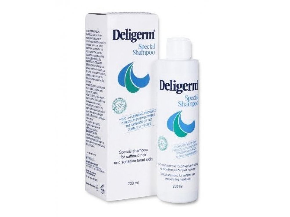 Σαμπουάν για ταλαιπωρημένα μαλλιά και ευαίσθητη επιδερμίδα κεφαλής, καθώς επίσης και για καθημερινό ακόμη λούσιμο. Το Deligerm Special Shampoo είναι ένα προϊόν επιστημονικής έρευνας και πιστεύεται ότι συμβάλλει κατά τον καλύτερο τρόπο στην υγιεινή περιποίηση του τριχωτοπύ της κεφαλής και ειδικά εκεί που έχουμε ταλαιπωρημένα μαλλιά και ευαίσθητη επιδερμίδα. ΙΔΙΟΤΗΤΕΣ: Το Deligerm Special Shampoo λόγω των βασικών συστατικών του και του ΡΗ αυτού που είναι 5,5-7 απόλυτα προσαρμοσμένο με αυτό του δέρματος, παρουσιάζει τις εξής ιδιότητες: - Καθαρίζει ήπια, προφυλακτικά και σε βάθος, τονώνοντας το τριχωτό της κεφαλής. - Δεν ερεθίζει τον φυσιολογικό όξινο μανδύα της επιδερμίδας της κεφαλής. - Ρυθμίζει τη λιπαρότητα της κεφαλής διατηρώντας τα μαλλιά χωρίς να λιπαίνονται αλλά και χωρίς να ξηραίνεται η επιδερμίδα της καφελής. Είναι ένα πολύ μαλακό σαμπουάν άριστο και για καθημερινό λούσιμο. Απλώστε σε βρεγμένα μαλλιά κάνοντας ελαφρύ μασάζ. Ξεβγάλτε και επαναλάβετε. Αποφύγετε την επαφή με τα μάτια.