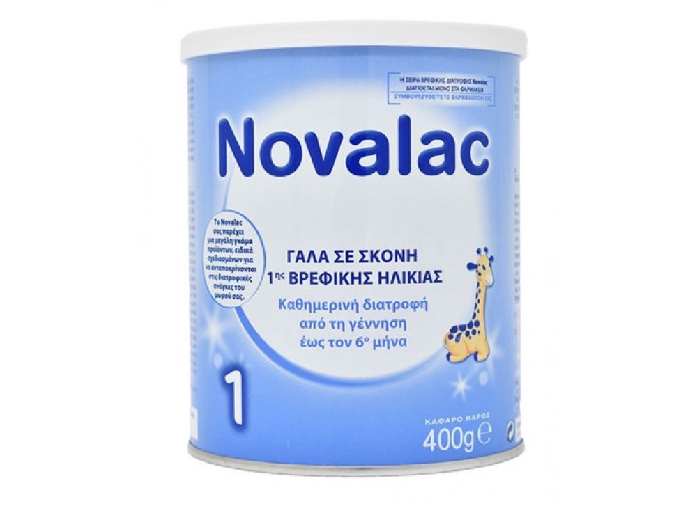 Το NOVALAC 1 είναι γάλα πρώτης βρεφικής ηλικίας, κατάλληλο για την διατροφή των τελειόμηνων βρεφών από τη γέννηση έως τον έκτο μήνα, όταν ο μητρικός θηλασμός δεν εφαρμόζεται. Αποτελεί μέρος μιας πλήρους σειράς προϊόντων, ειδικά μελετημένων, έτσι ώστε να αναταποκρίνονται στις διατροφικές ανάγκες του μωρού σας. Σε περιπτώσεις αλλεργίας στην πρωτεϊνη του αγελαδινού γάλακτος ή ελλειποβαρών βρεφών συμβουλευτείτε έναν ειδικό. Για βρέφη άνω των 6 μηνών, με τη σύμφωνη γνώμη του γιατρού σας, τροφές απογαλακτισμού, θα πρέπει να εισάγονται βαθμιαία και παράλληλα με το Novalac 2. Οδηγίες χρήσης: Αποστειρώστε καλά τα μπιμπερό, το θήλαστρο καθώς και όλα τα σκεύη που θα χρησιμοποιήσετε βράζετε φρέσκο καθαρό νερό για πέντε λεπτά και το αφήνετε να κρυώσει σχεδόν στους 40oC. Γεμίστε τη φιάλη με την σωστή ποσότητα νερού. προσθέστε την σωστή ποσότητα σκόνης, χρησιμοποιώντας τη μεζούρα που υπάρχει μέσα στο κουτί. Κλείστε τη φιάλη τοποθετώντας το πώμα και ανακινήστε καλά μέχρι να διαλυθεί εντελώς η σκόνη. Αφαιρέστε το πώμα και τοποθετήστε την αποστειρωμένη θηλή. αφήστε το περιεχόμενο να κρυώσει μέχρι να γίνει χλιαρό (37οC). Δοκιμάστε τη θερμοκρασία του γάλακτος στάζοντας μερικές σταγόνες στο εσωτερικό του καρπού σας. Δίνετε το γάλα μόλις το ετοιμάσετε. Προφυλάξεις: Κλείστε το κουτί μετά από κάθε χρήση με το καπάκι που διατίθεται. Φυλάσσεται σε δροσερό και ξηρό μέρος, προστατευμένο από το φως. Χρησιμοποιήστε το εντός 3 εβδομάδων από το άνοιγμα. Μην το χρησιμοποιείτε μετά την ημερομηνία λήξης που αναγράφεται στο κάτω μέρος του κουτιού. Μην προετοιμάζετε το μπιμπερό εκ των προτέρων, αλλά πάντα λίγο πριν από τη χρήση.