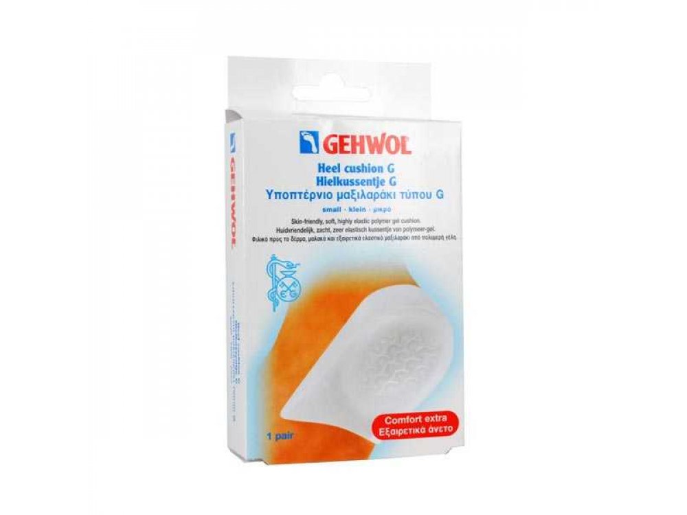 Ολοκληρωμένη σειρά προστασίας και περιποίησης από την GEHWOL, για την υγεία των ποδιών σας! Φροντίζουμε τα πόδια μας όπως τους αξίζει! Τα πόδια μας καταπονούνται ιδιαίτερα στη διάρκεια της ημέρας, καθώς φέρουν το _βάρος_ κάθε δραστηριότητάς μας. Επομένως, έχουμε ένα λόγο παραπάνω να τους παρέχουμε συστηματικά και με συνέπεια τη φροντίδα που χρειάζονται ώστε να αποφεύγουμε παθήσεις και να τους εξασφαλίζουμε ομορφιά και υγεία! Gehwol Heel Cushion G Small - Υποπτέρνιο μαξιλαράκι τύπου G, Μικρού μεγέθους. Αντιπιεστικό και προστατευτικό επικάλυμμα πολυμερούς γέλης, τύπου G. Aνακούφιση στα μέτρα σας! Επικάλυμμα απο μαλακό, υψηλής ελαστικότητας υλικό, φιλικό στο δέρμα, για προστασία από πίεση. Ανακουφίζει από την πίεση και τον πόνο σε περίπτωση πτερνικής άκανθας. Καινοτόμες κυματοειδείς αύλακες πολυμερούς γέλης επιδρούν στα επίμαχα σημεία των πελμάτων, απορροφούν τους κραδασμούς και αποτρέπουν την υπερβολική άσκηση πίεσης στην όρθια στάση και κατά τη διάρκεια του περπατήματος. Επίσης, τα υποπτέρνια μαξιλαράκια επιδρούν ανακουφιστικά τόσο στα γόνατα, στην κατ_ ισχίον άρθρωση, στην αστραγαλο-κνημο-περονιαία άρθρωση, όσο και στη σπονδυλική στήλη. Είναι εξαιρετικά ελαστικό και μαλακό. Έχει τέλεια εφαρμογή στο σχήμα του ποδιού. Εφαρμόζει τέλεια στο πέλμα χωρίς να γλιστράει. Ενεργεί υποστηρικτικά σε θεραπείες. Είναι ιδανικό για ρευματικούς ασθενείς.
