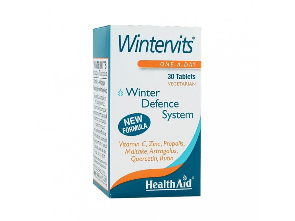 Το Wintervits της HealthAid είναι σύνθεση που συνδυάζει την Βιταμίνη C με Ψευδάργυρο, Μαϊτάκε, είδος μανιταριού με ιδιαίτερα τονωτικές ιδιότητες, Αστράγαλο και Πρόπολη. Περιέχει επίσης Ρουτίνη & Κουερσετίνη που είναι φυσικά βιοφλαβονοειδή με ισχυρές αντιαλλεργικές και αντιφλεγμονώδεις ιδιότητες. Άμεσα αποτελεσματικό προσφέρει ολική προστασία του οργανισμού καθόλη τη διάρκεια του έτους και ιδιαίτερα τους χειμερινούς μήνες. Βοηθά στον σχηματισμό λευκών αιμοσφαιρίων δημιουργώντας δυνατό ανοσοποιητικό σύστημα, ώστε να είναι ανθεκτικό στις ιώσεις.