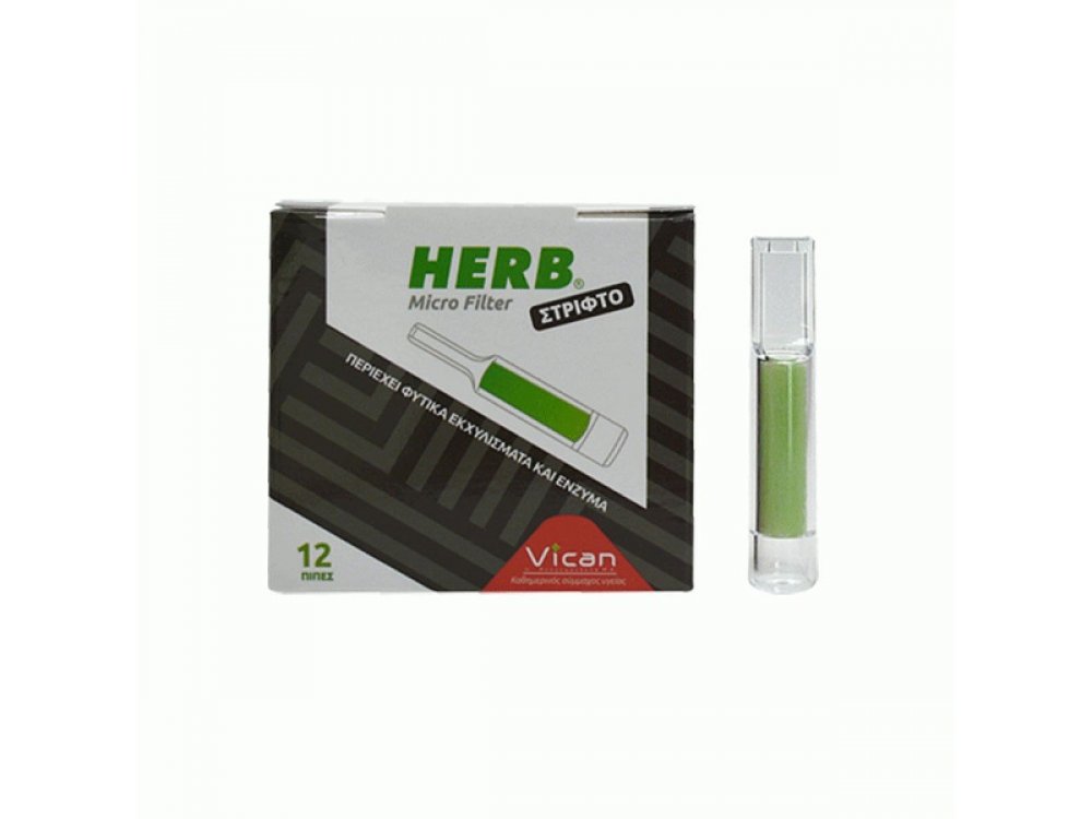 HERB Micro Filter Πίπες για στριφτό τσιγάρο με φίλτρο από φυτικά εκχυλίσματα και ένζυμα 12 τεμάχια.To HERB_ Micro Filter διαθέτει ένα πρωτοποριακό φίλτρο το οποίο περιέχει πάνω από 10 φυτικά βότανα και ένζυμα (ηράνθεμο, γλυκόριζα πράσινο τσάι κ.α.) που συλλέγουν και μειώνουν τις επικίνδυνες ουσίες του τσιγάρου.