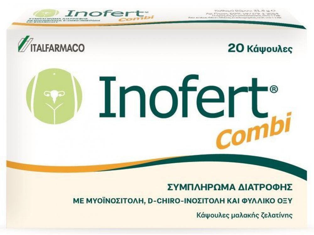 Το Inofert Combi είναι ενα συμπλήρωμα διατροφής που περιέχειμυοινοσιτόλη, d-Chro-Ινοσιτόλη και φολικό οξύ, χρήσιμο για τη λήψη συμπληρωματικού ποσού των θρεπτικών συστατικών που το αποτελούν, σε περίπτωση μειωμένης διατροφικής πρόσληψης ή αυξημένων απαιτήσεων.