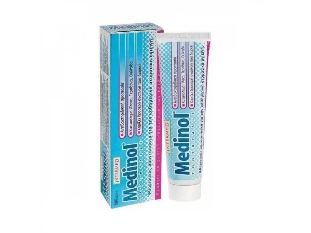 Η Medinol Toothpaste είναι καθημερινή φθοριούχος οδοντόπαστα για την αποτελεσματική και ολοκληρωμένη προστασία που έχει ανάγκη η στοματική κοιλότητα καθημερινά και ιδιαίτερα για τη μείωση της υπερευαισθησίας των δοντιών με συστηματική χρήση & τη συντήρηση του αποτελέσματος της εντατικής αντιμετώπισης της αυχενικής υπερευαισθησίας. ΕΝΔΕΙΞΕΙΣ Οδοντική υπερευαισθησία Ενδυνάμωση της αδαμαντίνης & πρόληψη του τερηδονισμού των δοντιών Με τον συνδυασμό φθοριούχου κασσίτερου & οργανικού φθορίου (1400ppm F-). Με υπέροχη γεύση μέντας. Tube. 100ml Οδηγίες Χρήσης Χρησιμοποιείστε αρκούσα ποσότητα MEDINOL TOOTHPASTE για να βουρτσίσετε τα δόντια σας το πρωί και το βράδυ καθώς και μετά από κάθε γεύμα, κάθε μέρα.
