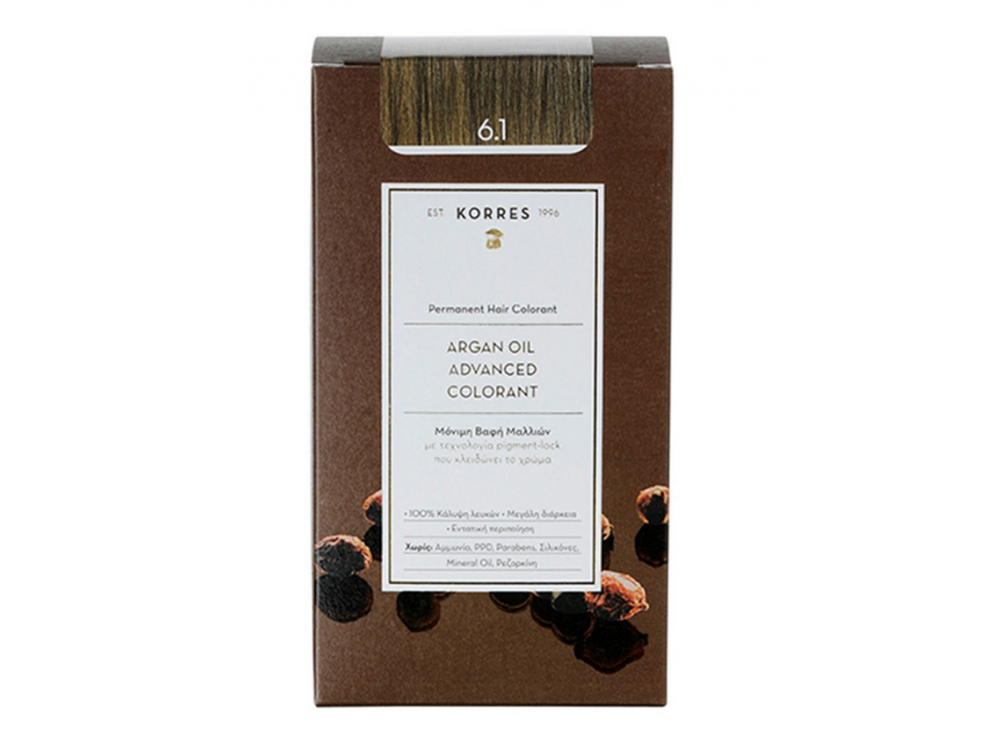 Korres Βαφή ARGAN OIL Advanced Colorant 6.1 Ξανθό Σκούρο Σαντρέ