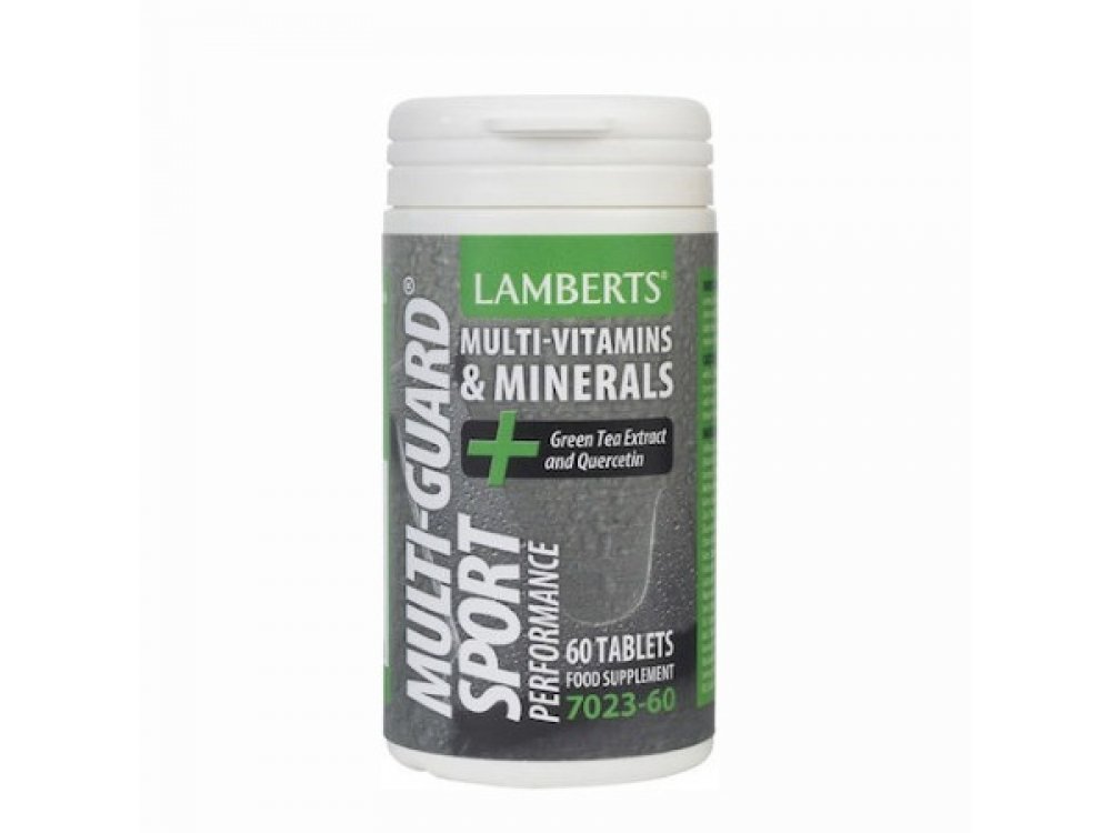 Το Multi Guard _ Sport αποτελεί το πλέον πλήρες και ολοκληρωμένο πολυβιταμινούχο σκεύασμα για αθλητές και άτομα που ακολουθούν ένα απαιτητικό πρόγραμμα εκγύμνασης. Περιέχοντας 26 βιταμίνες και ανόργανα συστατικά σε συνδυασμό με την προσθήκη ειδικά επιλεγμένων αντιοξειδωτικών αποτελεί την ιδανική βάση ενός πλήρους προγράμματος αθλητικής διατροφής. Το κύριο χαρακτηριστικό του Multi Guard Sport είναι η προσθήκη Μαγνησίου σε υψηλά επίπεδα (376mg , ανά 2 ταμπλέτες) καθώς εκτός του σημαντικού ρόλου που διαδραματίζει το Μαγνήσιο στην παραγωγή ενέργειας και στην υγεία των μυών , η υποκλινική ανεπάρκεια του εκδηλώνεται με μυϊκό άλγος μετά το πέρας της προπόνησης, ενώ η συμπληρωματική χορήγηση Μαγνησίου σχετίζεται με μείωση της αδυναμίας και της κόπωσης που ακολουθούν ένα απαιτητικό πρόγραμμα εκγύμνασης. Εκτός του Μαγνησίου, η επιλογή των υπόλοιπων μετάλλων και βιταμινών που περιέχονται στο Multi Guard Sport έγινε με βάση τις ιδιαίτερες διατροφικές ανάγκες των αθλητών. Πιο συγκεκριμένα παρέχει υψηλά επίπεδα βιταμίνης D3 και Κ (συμβάλλουν στην οστική υγεία) , Α,C και Ε (ισχυρά αντιοξειδωτικά), βιταμίνες του συμπλέγματος Β (Β1,Β2,Β3,Β5,Β12,φυλικό οξύ,χολίνη και ινοσιτόλη,PABA -συμβάλλουν στον μεταβολισμό των υδατανθράκων και στην υγεία του νευρικού συστήματος), σελήνιο (πανίσχυρο αντιοξειδωτικό),ασβέστιο σίδηρο, μαγγάνιο, ιώδιο, ψευδάργυρο, χαλκό και χρώμιο. Όσον αφορά στο χρώμιο το Multi Guard _ Sport περιέχει 200μg, καθώς η ποσότητα αυτή σχετίζεται με την διατήρηση των φυσιολογικών επιπέδων γλυκόζης μεταγευματικά. Ένα άλλο μοναδικό χαρακτηριστικό του Multi- Guard _ Sport είναι ο ισχυρός συνδυασμός φυτοχημικά δραστικών αντιοξειδωτικών ουσιών, δηλαδή ουσιών φυτικής προελεύσεως με πανίσχυρη αντιοξειδωτική δράση. Ο λόγος που προστέθηκαν οι ουσίες αυτές είναι η αυξημένη παραγωγή ελεύθερων ριζών (οξειδωτικό στρες) και η ταχεία εξάντληση των αντιοξειδωτικών αποθηκών του οργανισμού που συνοδεύουν ένα απαιτητικό πρόγραμμα εκγύμνασης. Τα αντιοξειδωτικά φυτικής προε