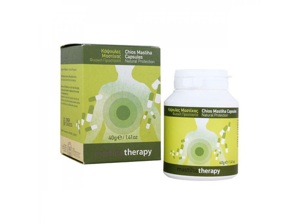 Φυτικό συμπλήρωμα διατροφής που περιέχει 350 mg φυσική μαστίχα Χίου σε σκόνη ανά κάψουλα και απευθύνεται σε άτομα με προβλήματα δυσπεψίας και λοιπών γαστρεντερικών διαταραχών. Οι μοναδικές ευεργετικές και θεραπευτικές ιδιότητες της μαστίχας Χίου αναγνωρίζονται ήδη από το 2.500 π.Χ.. Σε όλη τη διάρκεια των ετών, υπάρχουν αναφορές από τον Ηρόδοτο, τον Διοσκουρίδη, αλλά και από τον Γαληνό, ο οποίος τον 2ο αι. μ.Χ. εκθειάζει τις στυπτικές και μαλακτικές ιδιότητες της μαστίχας Χίου και τη συνιστά στις φλεγμονές του στομάχου, εντέρου και του ήπατος. Τα νεότερα χρόνια, προκύπτουν νέα κλινικά δεδομένα που αφορούν τη θεραπευτική δράση της μαστίχας στο πεπτικό και ειδικότερα την αντιμικροβιακή της δράση έναντι του ελικοβακτηριδίου του πυλωρού που ευθύνεται σε μεγάλο ποσοστό για την εμφάνιση γαστρικού έλκους. Μελέτες από μεγάλα νοσοκομεία και πανεπιστήμια πιστοποιούν τη θετική δράση της μαστίχας σε ασθενείς με Σύνδρομο Ευερέθιστου Εντέρου, καθώς και τη βελτίωση της κλινικής εικόνας ασθενών με νόσο Crohn. Πλέον σήμερα, οι μοναδικές ιδιότητές της είναι επιβεβαιωμένες και κλινικά τεκμηριωμένες από τη διεθνή επιστημονική κοινότητα. Από τον Ιούνιο του 2015 η Μαστίχα Χίου έχει αναγνωριστεί επισήμως από τον Ευρωπαϊκό Οργανισμό Φαρμάκων (ΕΜΑ) ως Φάρμακο Φυτικής Προέλευσης με τις παρακάτω ενδείξεις: ήπιες δυσπεπτικές διαταραχές (από του στόματος λήψη), φλεγμονές του δέρματος και επούλωση δερματικών πληγών (δερματική λήψη). Η συνεισφορά των mastihatherapy caps στην υγιεινή του γαστρεντερικού συστήματος είναι πολύτιμη, καθώς η μοναδικότητά τους έγκειται στο μοναδικό συνδυασμό 69 συστατικών της Μαστίχας Χίου. Η θεραπεία με mastihatherapy caps βελτιώνει σημαντικά το σύνολο των συμπτωμάτων της λειτουργικής δυσπεψίας, όπως στομαχικό άλγος (γενικό ή/και λόγω άγχους), οπισθοστερνικό καύσο (καούρα), αμβλύ πόνο στην άνω κοιλιακή χώρα. Έχει άριστη ανοχή χωρίς ανεπιθύμητες ενέργειες και αλληλεπιδράσεις με άλλα φάρμακα ή ουσίες. Χρήση: 2 κάψουλες μαζί το πρωί και 2 το βράδυ με νερό ή χυμό.