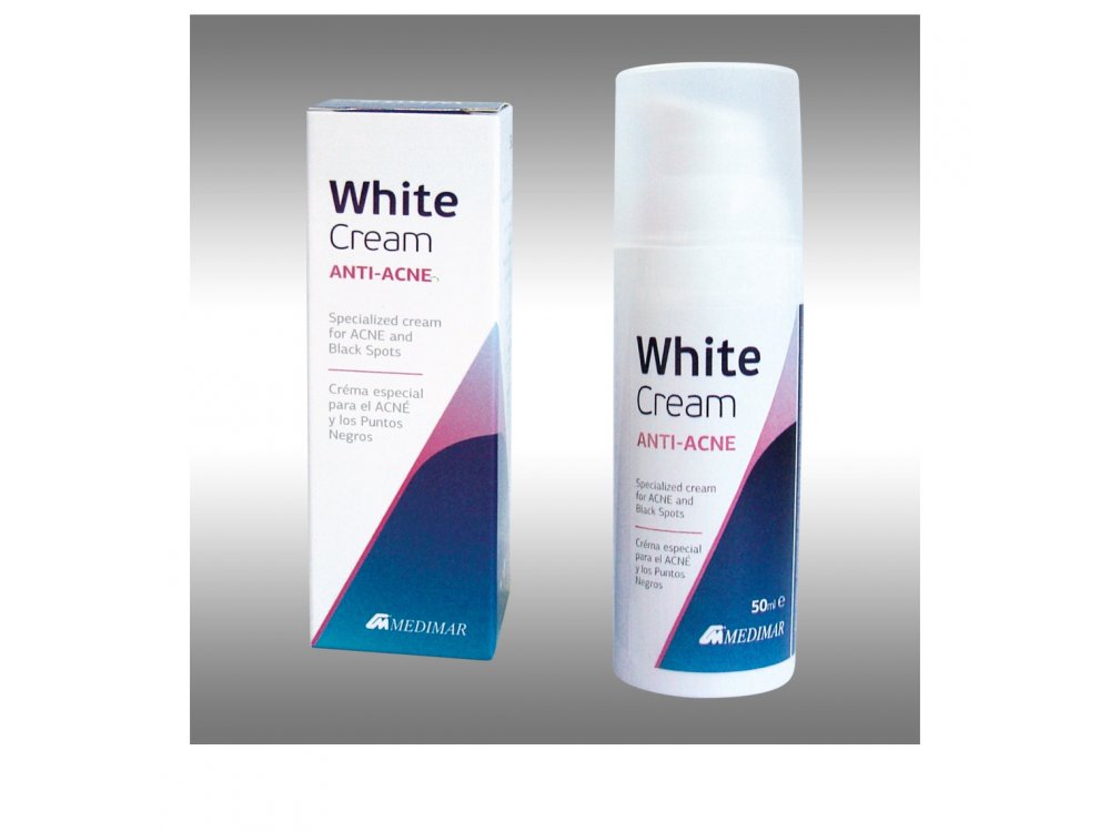 Η Medimar white cream anti _ acne 50ml αποτελεί μια υψηλής απόδοσης ενυδατική κρέμα προσώπου η οποία διαθέτει πλούσια και κρεμώδη υφή που απορροφάτα άμεσα από την επιδερμίδα, με προηγμένη τεχνολογία που εισχωρεί και κλειδώνει το νερό σε όλες τις περιοχές του προσώπου. Είναι κατάλληλη και ιδανική να καταπολεμήσει και να εξαφανίσει την ακμή και τα μαύρα σημάδια στίγματα από το πρόσωπο.