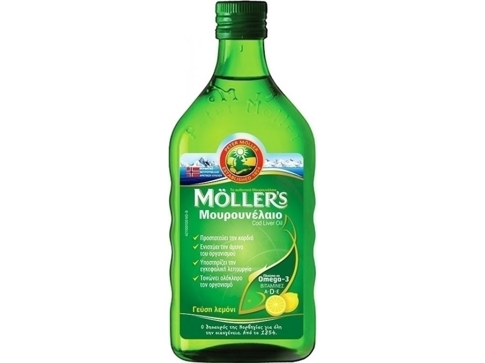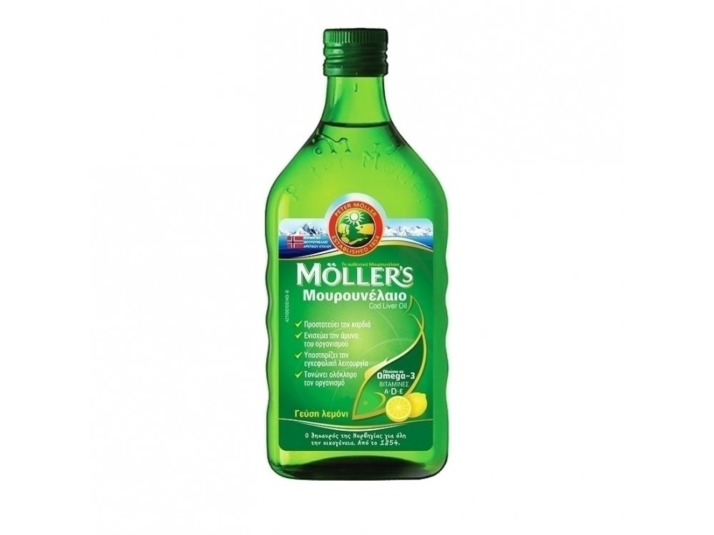 Νορβηγικό Μουρουνέλαιο Möller’s. Συμπληρώνει την καθημερινή διατροφή με απαραίτητα ω-3 λιπαρά οξέα και βιταμίνες D3, Α και Ε υποστηρίζοντας τη λειτουργία του εγκεφάλου1, της όρασης1 και της καρδιάς2.
