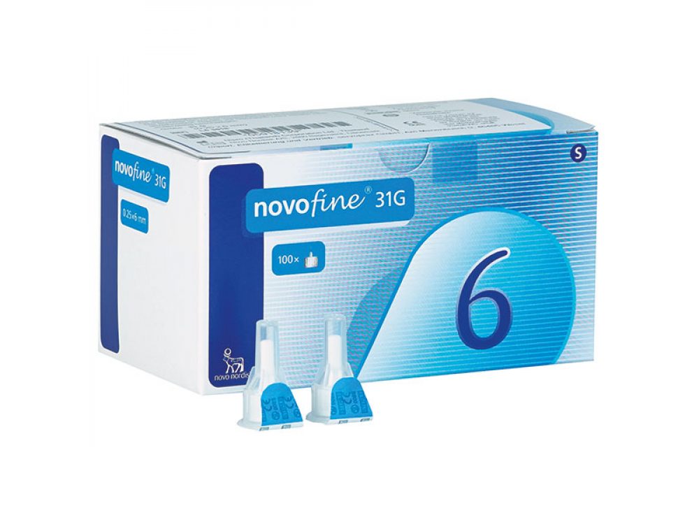 Αποστειρωμένες Βελόνες για εφάπαξ χρήση με τα συστήματα χορήγησης της NOVO NORDISK. Η σειρά των βελονών NovoFine συνδυάζει τα νεότερα κλινικά ευρήματα με την τεχνολογία αιχμής για την κατασκευή βελονών που προκαλούν σημαντικά λιγότερο πόνο και απαιτούν λιγότερη πίεση για την εκτέλεση της ένεσης. Οι κοντές βελόνες των 6mm συντελούν στην πιο προβλέψιμη απορρόφηση της ινσουλίνης μειώνοντας σημαντικά τον κίνδυνο ενδομυϊκής ένεσης. Οι βελόνες NovoFine κατασκευάζονται για να χρησιμοποιηθούν με τα συστήματα χορήγησης της Novo Nordis. Οι NovoFine _ βελόνες μιας χρήσης βελόνες μιας χρήσης έχουν σχεδιαστεί ειδικά για τη γραμμή Novo Nordisk των συστημάτων χορήγησης ινσουλίνης, οι άνθρωποι που χρησιμοποιούν το FlexPen ή NovoPen 3 μπορούν να είναι σίγουροι ότι οι βελόνες τους έχουν άριστο ταίριασμα. Οι βελόνες NovoFine _ προσφέρουν επίσης και άλλα οφέλη για τα άτομα με διαβήτη, συμπεριλαμβανομένων: Σχεδόν χωρίς πόνο Στυλό ινσουλίνης NovoFine _ με 30 βελόνες κρίθηκαν ουσιαστικά χωρίς πόνο από το 90% των ερωτηθέντων Μικρότερο μήκος, το οποίο συμβάλλει στην αποτροπή τους ανθρώπους από τυχαία ένεση ινσουλίνης τους στο μυϊκό ιστό 100 βελόνες 31 G πάχος 6 χιλιοστά μήκος Βελτίωση της ασφάλειας, λόγω της υψηλής ποιότητας καπάκι της βελόνας Τεχνολογίας λεπτού τοιχώματος βελόνας Σε αντίθεση με άλλες βελόνες, οι βελόνες NovoFine _ έχουν μεγαλύτερη οπή (εσωτερικό άνοιγμα) και λεπτότερα τοιχώματα. Αυτό επιτρέπει την ινσουλίνη να ρέει πιο ελεύθερα, γι 'αυτό χρειάζεται λιγότερο χρόνο για να δώσουν τη δόση 100τμχ