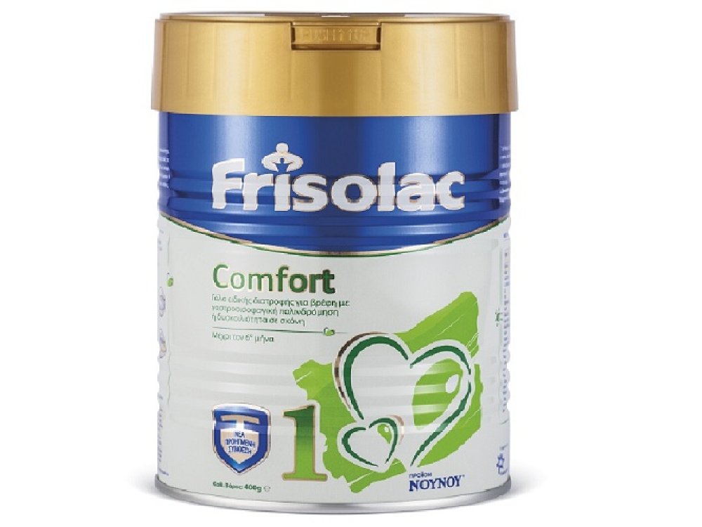 NOYNOY Frisolac 1 Comfort Ειδικό Γάλα για βρέφη 400gr από 0 έως 6 μηνών Γάλα για βρέφη με γαστροοισοφαγική παλινδρόμηση ή δυσκοιλιότητα Με νέα προηγμένη σύνθεση με πρεβιοτικά, πολυακόρεστα λιπαρά οξέα μακράς αλύσου (DHA εικοσιδυεξενικό οξύ, ΑΑ αραχιδονικό οξύ), νουκλεοτίδια και κόμμι χαρουπιού. Επιπλέον το Frisolac Comfort παρέχει όλες τις απαραίτητες βιταμίνες, ιχνοστοιχεία και λιπαρά οξέα για την υγιή ανάπτυξη των βρεφών και καλύπτει τις ειδικές διατροφικές ανάγκες τους. 400g