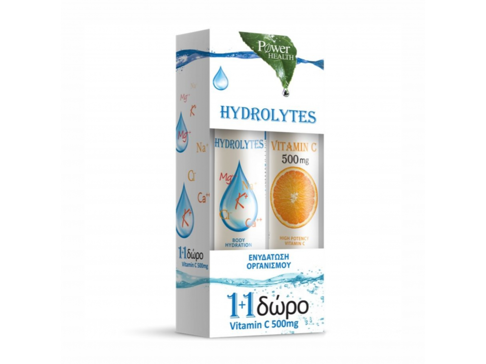 Power Health Hydrolytes + ΔΩΡΟ Vitamin C 500mg Πορτοκάλι Οι ηλεκτρολύτες, όπως το ασβέστιο, το κάλιο και το μαγνήσιο, είναι μέταλλα τα οποία βρίσκονται φυσιολογικά στο σώμα μας. Η ισορροπία των μετάλλων είναι απαραίτητη για τη φυσιολογική λειτουργία των κυττάρων, των μυών και των νεύρων μας. Όταν αυτή η ισορροπία διαταράσσεται, μπορεί να παρουσιαστούν φαινόμενα αφυδάτωσης. Ανισσοροπία μπορεί να προκληθεί μετά τη διάρροια, με την εφίδρωση, κυρίως τις μέρες του καλοκαιριού και με την έντονη σωματική άσκηση. Το Hydrolytes αποτελεί ένα συνδυασμό ασβεστίου, καλίου και νατρίου. Με υπέροχη γεύση λεμόνι Κάλιο Συμβάλλει στη φυσιολογική λειτουργία του νευρικού συστήματος* Συμβάλλει στη φυσιολογική λειτουργία των μυών* Συμβάλλει στη διατήρηση της φυσιολογικής αρτηριακής πίεσης * Ασβέστιο συμβάλλει στη φυσιολογική λειτουργία των μεταβολικών διεργασιών που αποσκοπούν στην παραγωγή ενέργειας* συμβάλλει στη φυσιολογική λειτουργία των μυών* συμβάλλει στη φυσιολογική νευροδιαβίβαση* * Τα παραπάνω αποτελούν επίσημους ισχυρισμούς υγείας από την Eυρωπαϊκή Αρχή Ασφάλειας Τροφίμων (EFSA). Σύνθεση: Ενεργά συστατικά ανά δισκίο Αποδιδόμενη ποσότητα ανά δισκίο % Σ.Η.Π.* Νάτριο 263 mg - Κάλιο 200 mg - Χλώριο 195 mg - Μαγνήσιο 50 mg 16,7% Ασβέστιο 50 mg 7,1% Χρήση: Ενήλικες: Λαμβάνετε 1 δισκίο την ημέρα, διαλυμένο σε ένα ποτήρι νερό, ως συμπλήρωμα διατροφής. Χωρίς Συντηρητικά, Γλουτένη, Λακτόζη Εγκυμοσύνη / Θηλασμός Μη λαμβάνετε κανένα σκεύασμα κατά τη διάρκεια της εγκυμοσύνης και του θηλασμού, εκτός κι αν συνιστάται από το γιατρό σας. Διαβητικοί Δεν περιέχει ζάχαρη. Συσκευασία: 20 Αναβράζοντα Δισκία + ΔΩΡΟ Vitamin C 500mg Πορτοκάλι 20 Αναβράζοντα Δισκία