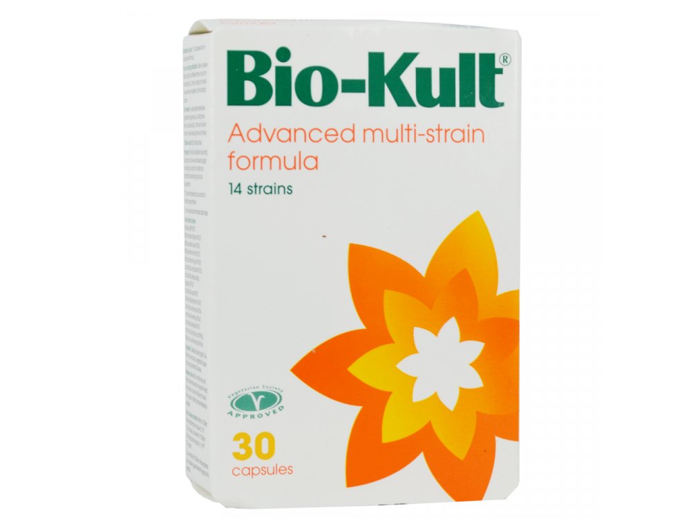 Η καινοτόμα φόρμουλα πολλαπλών στελεχών Bio-Kult, η οποία περιέχει 14 στελέχη ζωντανών βακτηρίων και είναι κατάλληλη για καθημερινή χρήση. Μπορεί να αποθηκευθεί σε θερμοκρασία δωματίου χωρίς την ανάγκη για ψύξη ή συντήρησηΕγγυημένο σύνολο έμβιων βακτηρίων μέχρι το τέλος της διάρκειας ζωής του προϊόντος (2 χρόνια)Κατάλληλο για παιδιά και έγκυες γυναίκες (συμβουλευτείτε το γιατρό ή φαρμακοποιό σας πριν από τη λήψη οποιουδήποτε συμπληρώματος διατροφής)Χωρίς γλουτένηΠεριέχει ίχνη σόγιας και γάλακτος, σε επίπεδο που δεν θα επηρεάσει όσους έχουν δυσανεξία στη λακτόζηΠαράγεται στο Ην.ΒασίλειοΚατάλληλο για vegetariansΚυτταρίνη (παράγοντας διόγκωσης), φυτική κάψουλα (Υδροξυπροπυλομεθυλο κυτταρίνη). Ισχύς προϊόντος: Ελάχιστη ποσότητα ζωντανών βακτηρίων στα 2 δισεκατομμύρια ανά κάψουλα (2?109 CFU / κάψουλα), που ισοδυναμεί με 10 δισεκατομμύρια ζωντανών βακτηρίων ανά γραμμάριο (1?1010 CFU / gram) Φύλαξη: Φυλάσσεται σε δροσερό και ξηρό μέρος ? δεν χρειάζεται ψυγείο ή κατάψυξη. Συστατικά: Ζωντανές καλλιέργειες βακτηρίων: Bacillus subtilis PXN 21Bifidobacterium bifidum PXN 23Bifidobacterium breve PXN 25Bifidobacterium infantis PXN 27Bifidobacterium longum PXN 30Lactobacillus acidophilus PXN 35Lactobacillus delbrueckii ssp. bulgaricus PXN 39Lactobacillus casei PXN 37Lactobacillus plantarum PXN 47Lactobacillus rhamnosus PXN 54Lactobacillus helveticus PXN 45Lactobacillus salivarius PXN 57Lactococcus lactis ssp. lactis PXN 63Streptococcus thermophilus PXN 66