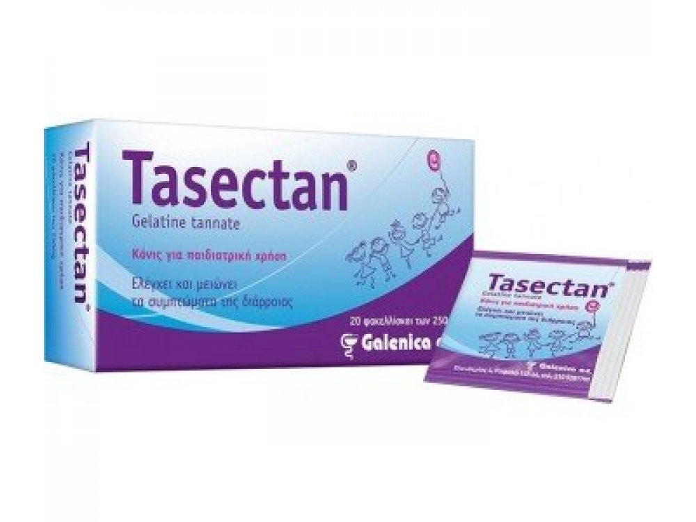 Το Tasectan σχεδιάστηκε ειδικά για να ελέγχει και να μειώνει τα συμπτώματα της διάρροιας, όπως κοιλιακό πόνο και συχνές κενώσεις. Το Tasectan μειώνει την συχνότητα και την διάρκεια των επεισοδίων της διάρροιας και αποκαθιστά την φυσιολογική λειτουργία των τοιχωμάτων του εντέρου. Δεν έχουν αναφερθεί ανεπιθύμητες ενέργειες ή αντενδείξεις, που σχετίζονται με την χρήση του σκευάσματος.