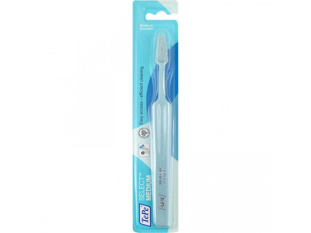 Οι οδοντόβουρτσες TEPE Select Medium Toothbrush 1 τεμάχιο έχουν τριγωνική κεφαλή και πυκνή εμφύτευση ινών για ευκολότερο και αποτελεσματικότερο καθαρισμό των πίσω δοντιών. Επίσης οι οδοντόβουρτσες TePe Select, βοηθάν στην ελάττωση του αντανακλαστικού του εμετού. Οι οδοντόβουρτσες TePe Select, διαθέτουν ίνες κεφαλής οι οποίες βρίσκονται στο ίδιο επίπεδο και είναι απόλυτα αποστρογγυλεμένες.