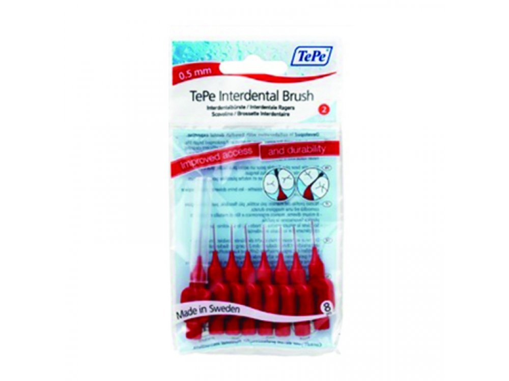 Μεσοδόντια Βουρτσάκια XX-Fine 0,5mm-Κόκκινα Χρησιμοποιούνται για τον καθημερινό καθαρισμό ανάμεσα στα δόντια των εμφυτευμάτων και των ορθοδοντικών μηχανημάτων ,στις περιοχές δηλαδή όπου η οδοντόβουρτσα δεν έχει πρόσβαση. Χαρακτηριστικά: Εύκαμπτος αυχένας με ειδικά επιλεγμένες ίνες, παρέχουν έναν εύκολο και αποτελεσματικό καθαρισμό και αντοχή στο χρόνο. Η εργονομική λαβή που έχουν τα καθιστά πιο εύχρηστα και πρακτικά. Συγκεκριμένα, το μεταλλικό τμήμα τους είναι πλαστικοποιημένο για μεγαλύτερη άνεση, για απαλό και ασφαλές καθάρισμα και αποφυγή γαλβανικού ρεύματος ή οποιασδήποτε βλάβης των εμφυτευμάτων. Τόσο η λαβή όσο και η συσκευασία είναι κατασκευασμένες από φιλικά προς το περιβάλλον πλαστικά. Συσκευασία 8 βουρτσάκια & 1 πλαστικό καπάκι