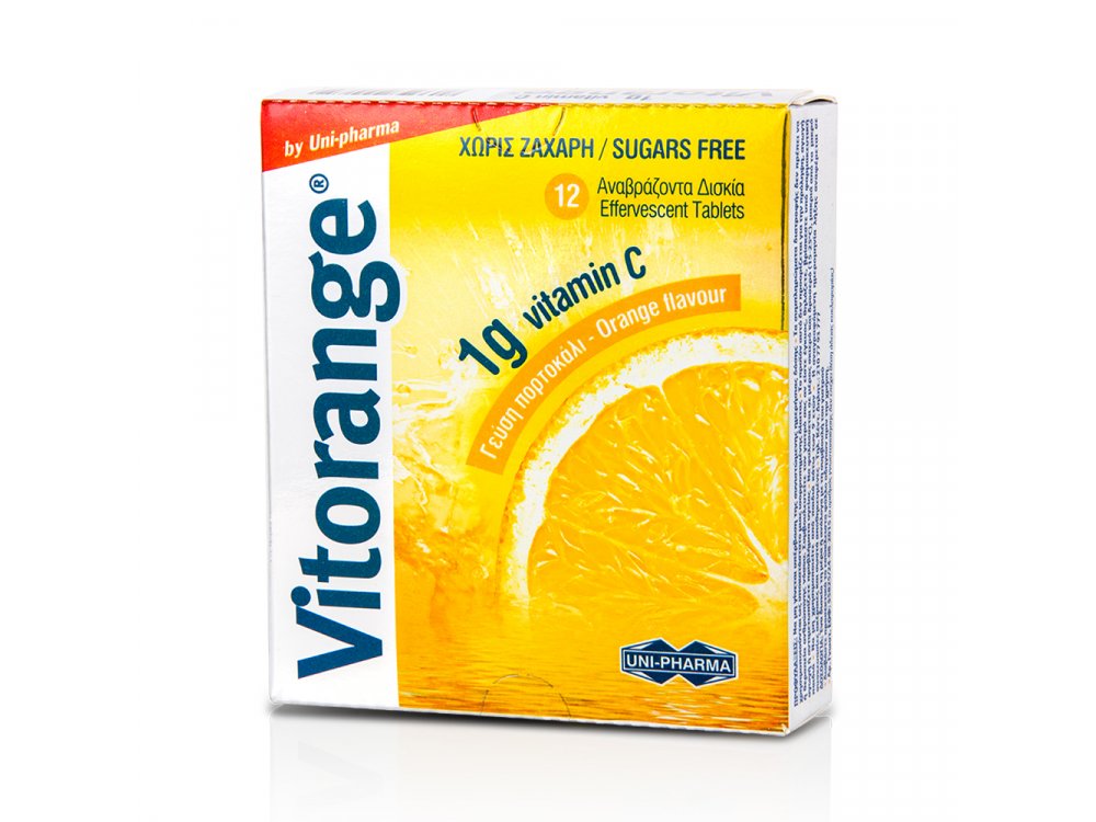Τo Vitorange, αναβράζοντα δισκία βιταμίνης C, είναι ωφέλιμο στην προφύλαξη από ιογενείς λοιμώξεις, ενώ συμβάλλει στην επιτάχυνση της ανάρρωσης από ασθένεια και της επούλωσης εγκαυμάτων και τραυμάτων.