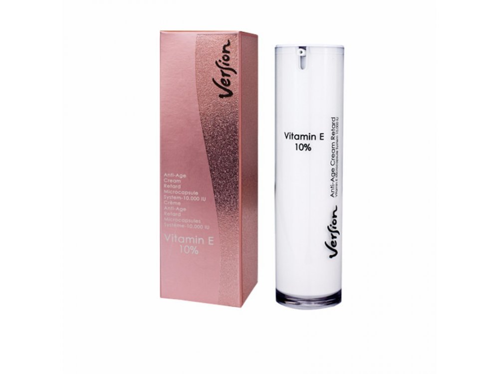 Προλαμβάνει και αναστρέφει την γήρανση. Κρέμα εντατικής θεραπείας, με αναγεννητικές ιδιότητες, που αποφέρει θεαματικά αποτελέσματα σε ιδιαίτερα κουρασμένα και γερασμένα δέρματα. Η κρέμα Version Vitamin Ε κάνει την επιδερμίδα πιο σφριγηλή, πιο τονωμένη. Καταπολεμά την πραγματική απειλή της γήρανσης του δέρματος, τη χαλάρωση του ιστού. Η έντονη κυτταρική δραστηριότητα, ξαναδίνει σφρίγος και νεανικότητα στο δέρμα. Προλαμβάνει από τη φθορά που προκαλούν οι βλαβερές υπεριώδεις ακτίνες και οι ελεύθερες ρίζες και αποτρέπει την απώλεια της υγρασίας, δημιουργώντας ένα αόρατο πέπλο στο δέρμα, που θωρακίζει την υγρασία και προσφέρει ελεγχόμενη ενυδάτωση. Η κρέμα VERSION VITAMIN Ε 10% παίζει βασικό ρόλο στην φροντίδα και προστασία του δέρματος. Βασίζεται σε ένα σύστημα μικροκαψουλών, που έχει σαν αποτέλεσμα η βιταμίνη Ε να ελευθερώνεται όταν το δέρμα την έχει ανάγκη. Δρα σε δύο επίπεδα: Στα βαθύτερα στρώματα του δέρματος ενεργοποιεί τους φυσικούς μηχανισμούς αποκατάστασης. Το δέρμα μπορεί έτσι από μόνο του να επιταχύνει το ρυθμό ανανέωσης των κυττάρων. Στην επιφάνεια του δέρματος η κρέμα προστατεύει ενεργά την επιδερμίδα από την πρόωρη καταστροφή των κυττάρων στην οποία οφείλεται και η γήρανση. 50ml