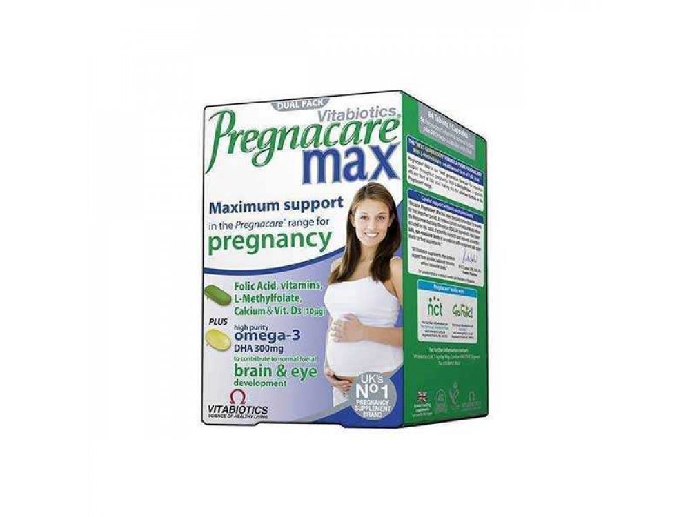 Το συμπλήρωμα διατροφής Pregnacare Max της Vitabiotics προσφέρει τη μέγιστη υποστήριξη κατά την περίοδο της εγκυμοσύνης και περιλαμβάνει πολυβιταμινούχες ταμπλέτες και ωμέγα-3 κάψουλες.
